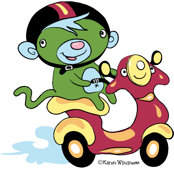 I haven’t yet come up with a rhyme for Scooter Monkey, but I liked the drawing too much not to finish it.