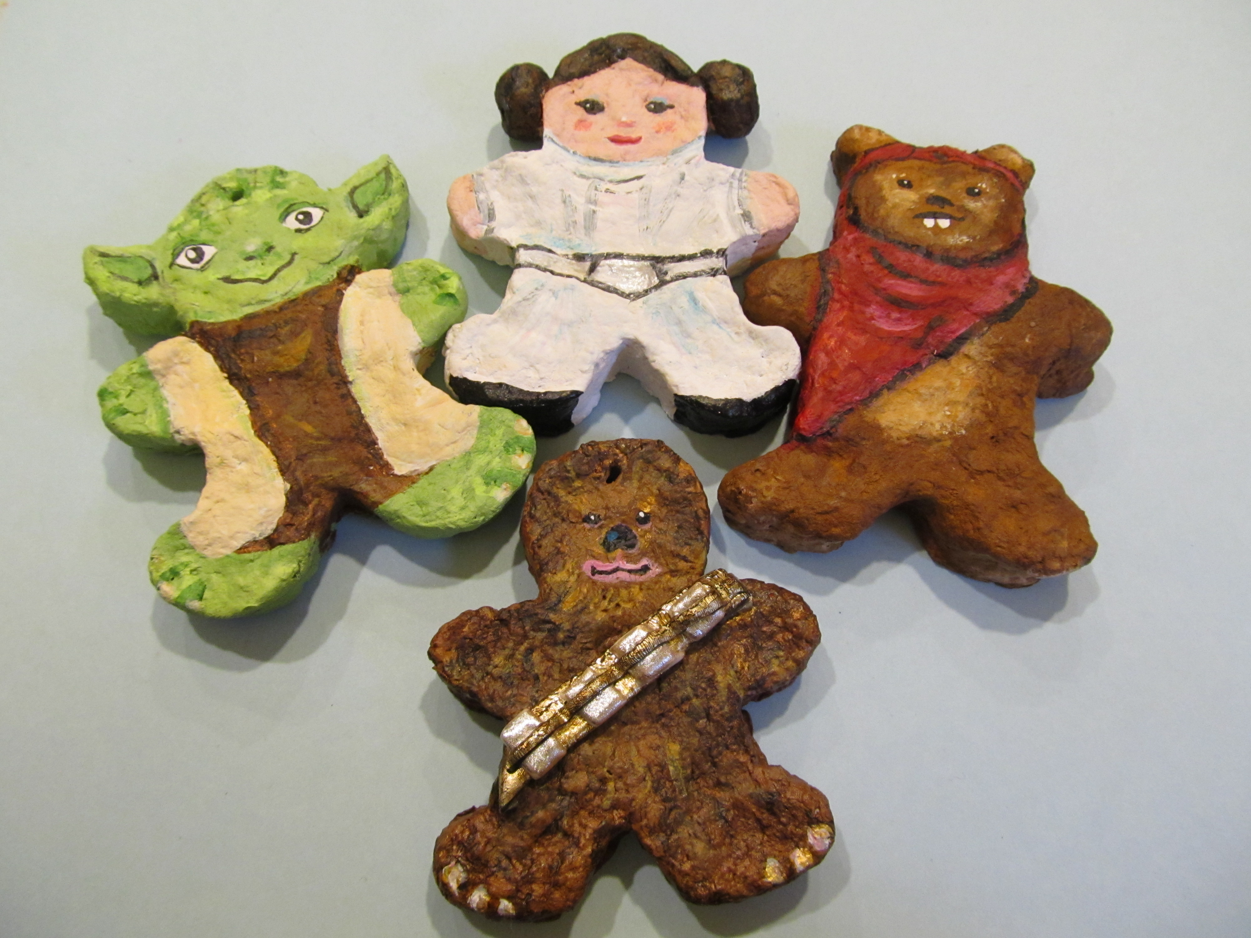 P.S. I made Darth Vader and C3PO sculptures today (takes a few days to dry). I’m also thinking about making a Gingerbread Luke and Han. And in case you’re wondering, the hole in the middle of their foreheads is for tree hanging purposes.
