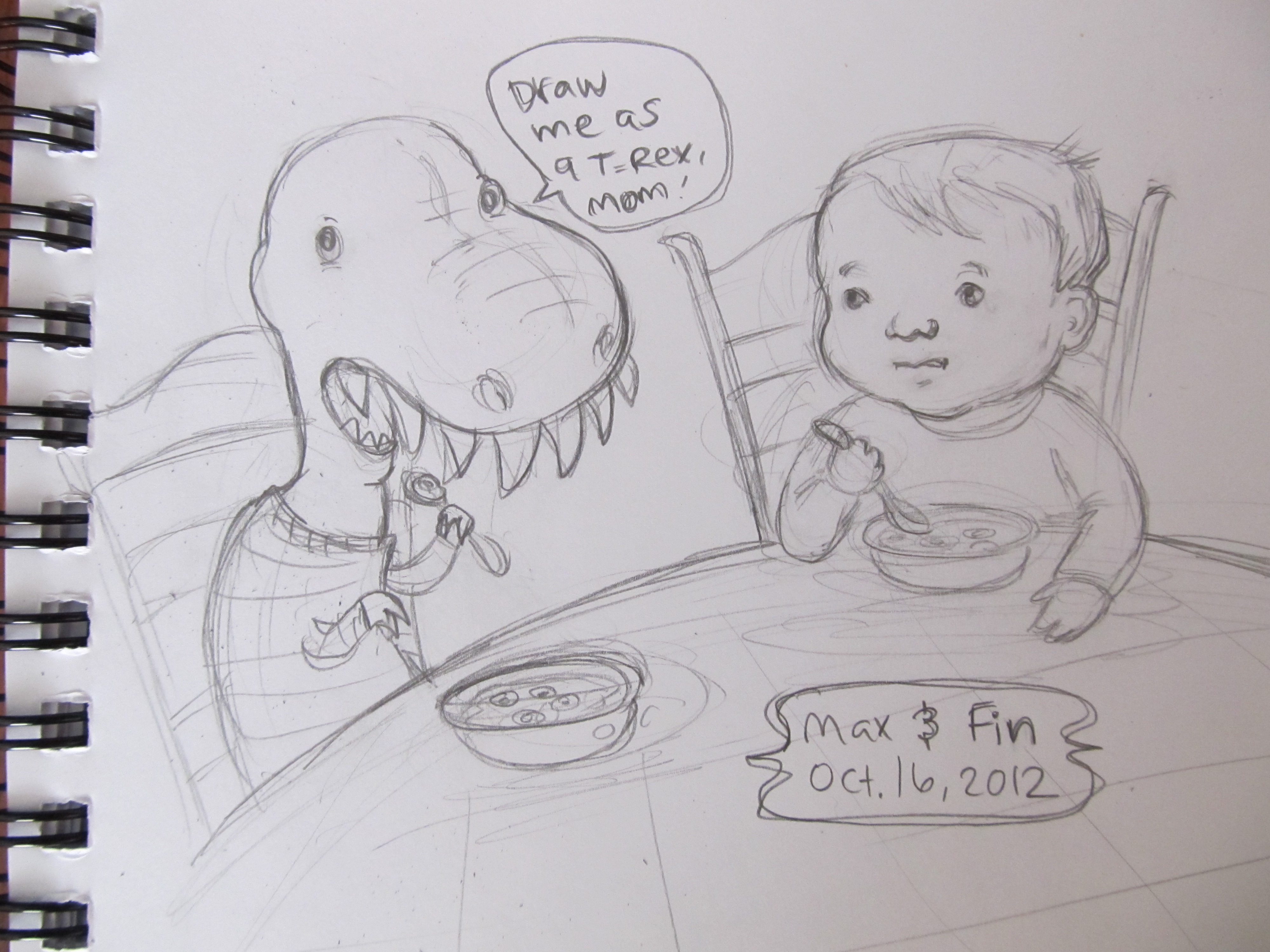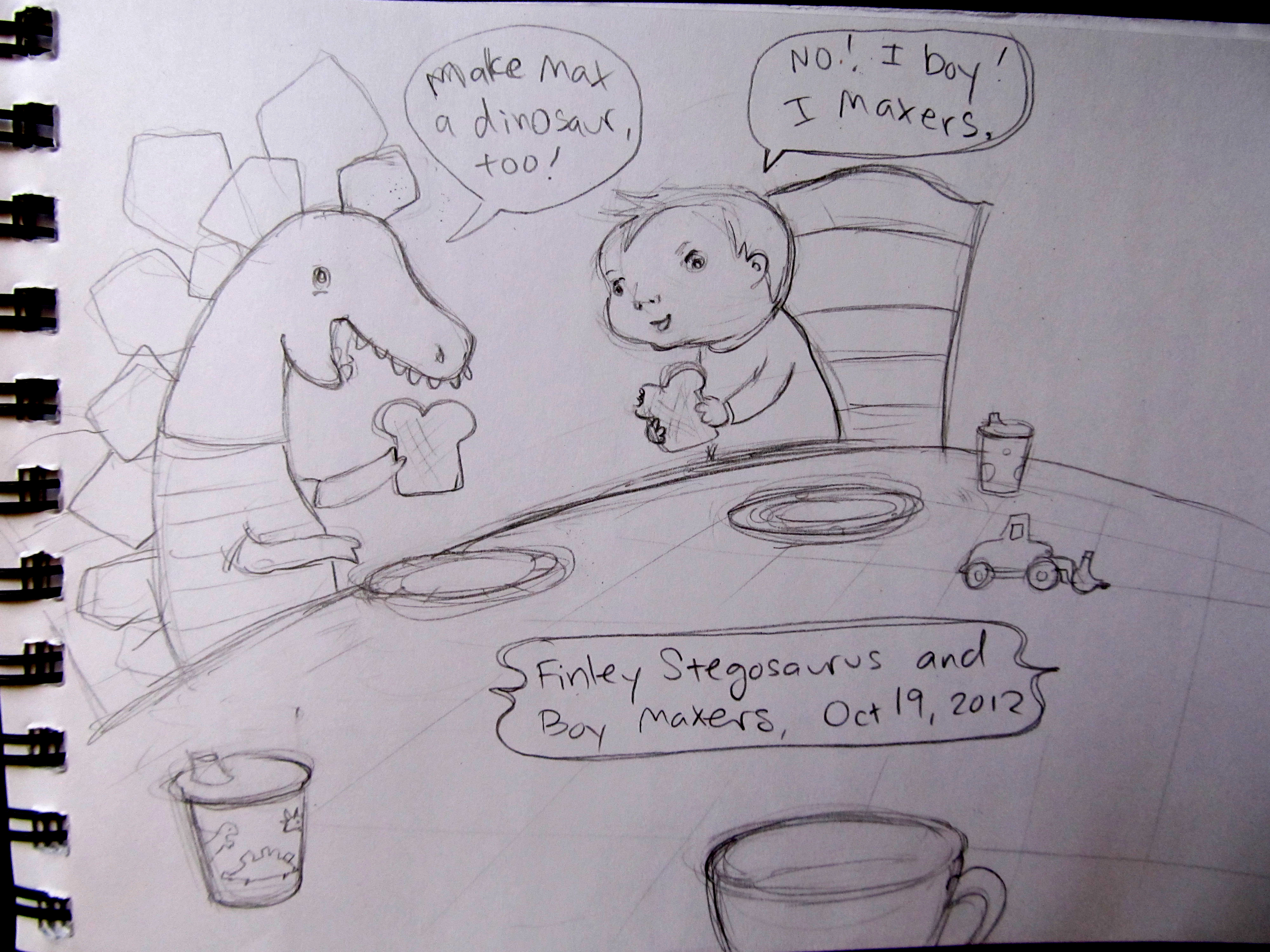 I’ve been doing little drawings of the kids for a while, but I had to stop drawing Finley because he would get mad if I drew him as a boy instead of what ever Jumpy Bean was at the moment. I finally gave into his requests, as you’ll see. (Click on an image below to see slide show.)