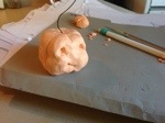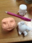 I’m making a big push to get my Gordie book project out into the world. I thought a model would be helpful in creating illustrations. I made this little guy out of Sculpey over tinfoil and a vinyl paint your own body (Frakenstein lost his head over it). Here are some photos of the process.