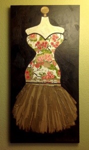 This is collaged gift wrap on canvas with acrylic paint over top. I like this technique because I can get some great textures and also have a large finished piece in less than a day. Very satisfying!
