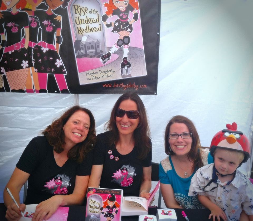 Here’s a photo of cohorts in crime. From left to right, authors and creators, Meghan and Alece, (Alece also illustrated), and me, writer girl, Karen Windness, and my son, Max.