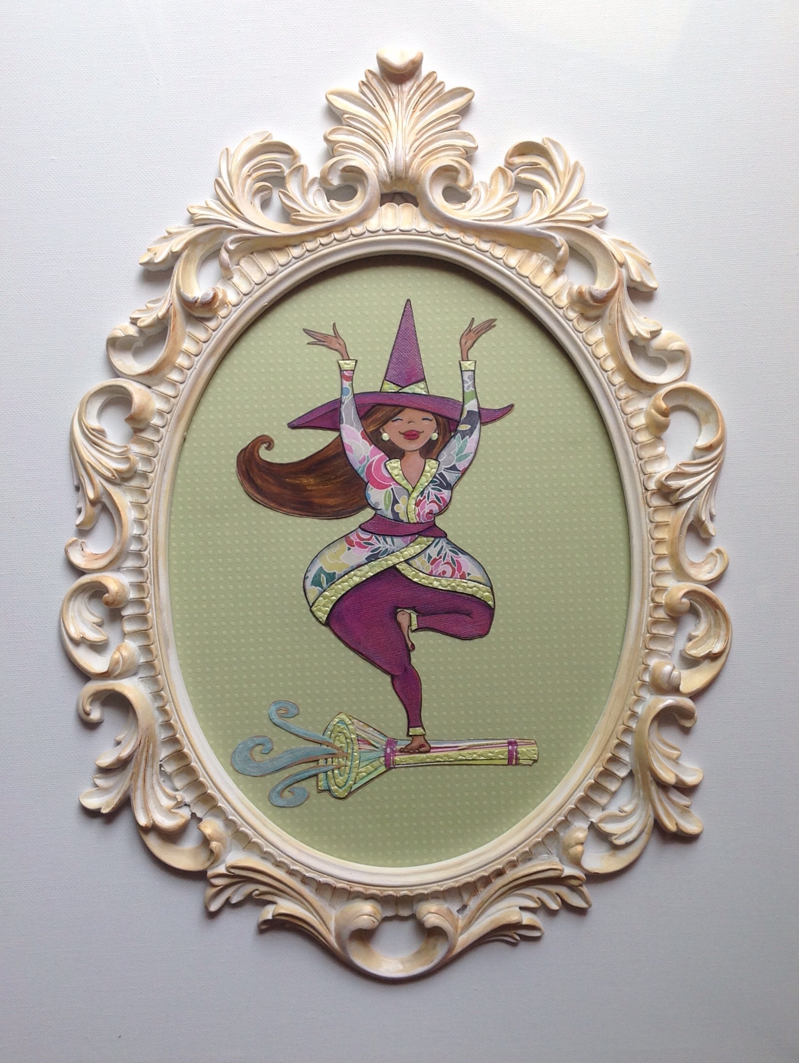 I just got this illustration framed up. I hand painted the frame and mounted the witch on scrapbooking paper and cardboard backing. Namaste!