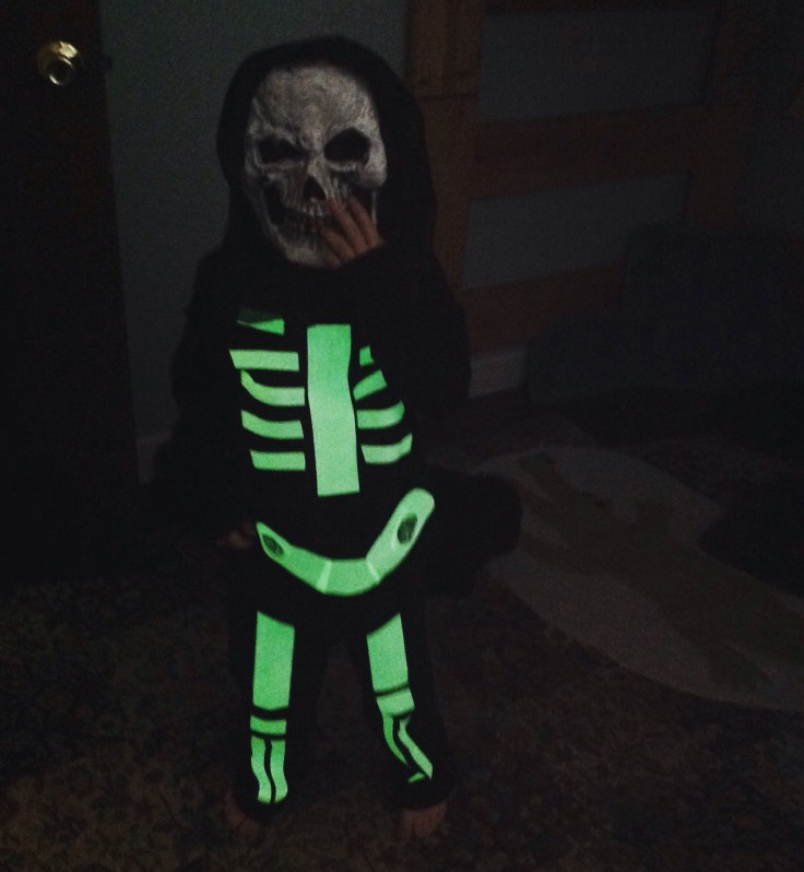 This is one happy skeleton kid, and the additional safety aspect has mom smiling, too!