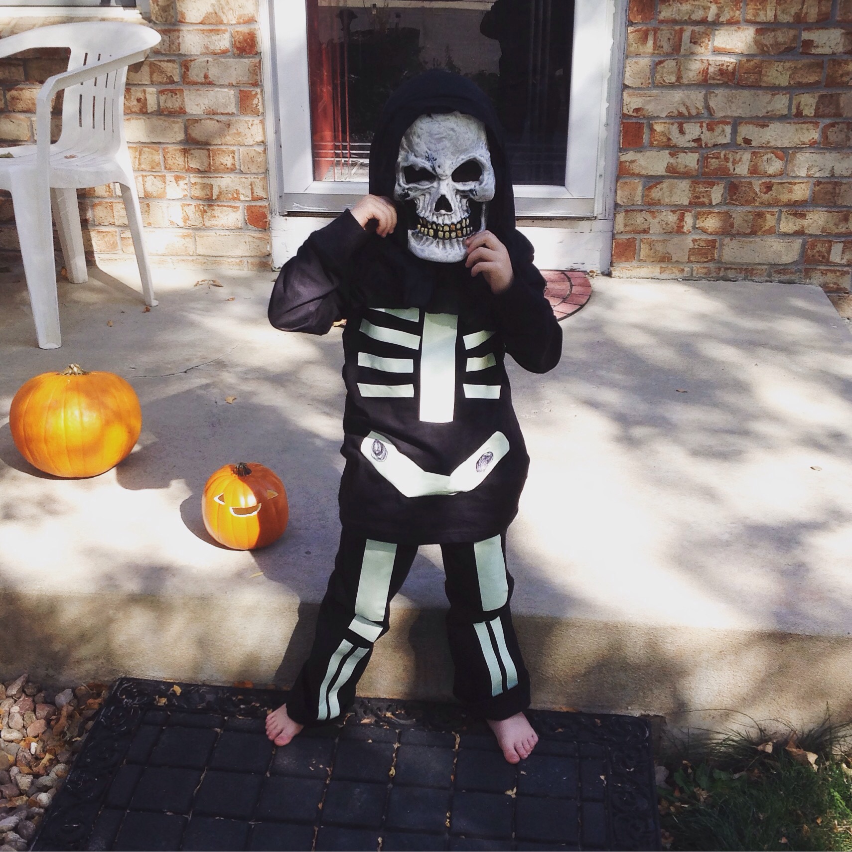 This is one happy skeleton kid, and the additional safety aspect has mom smiling, too!