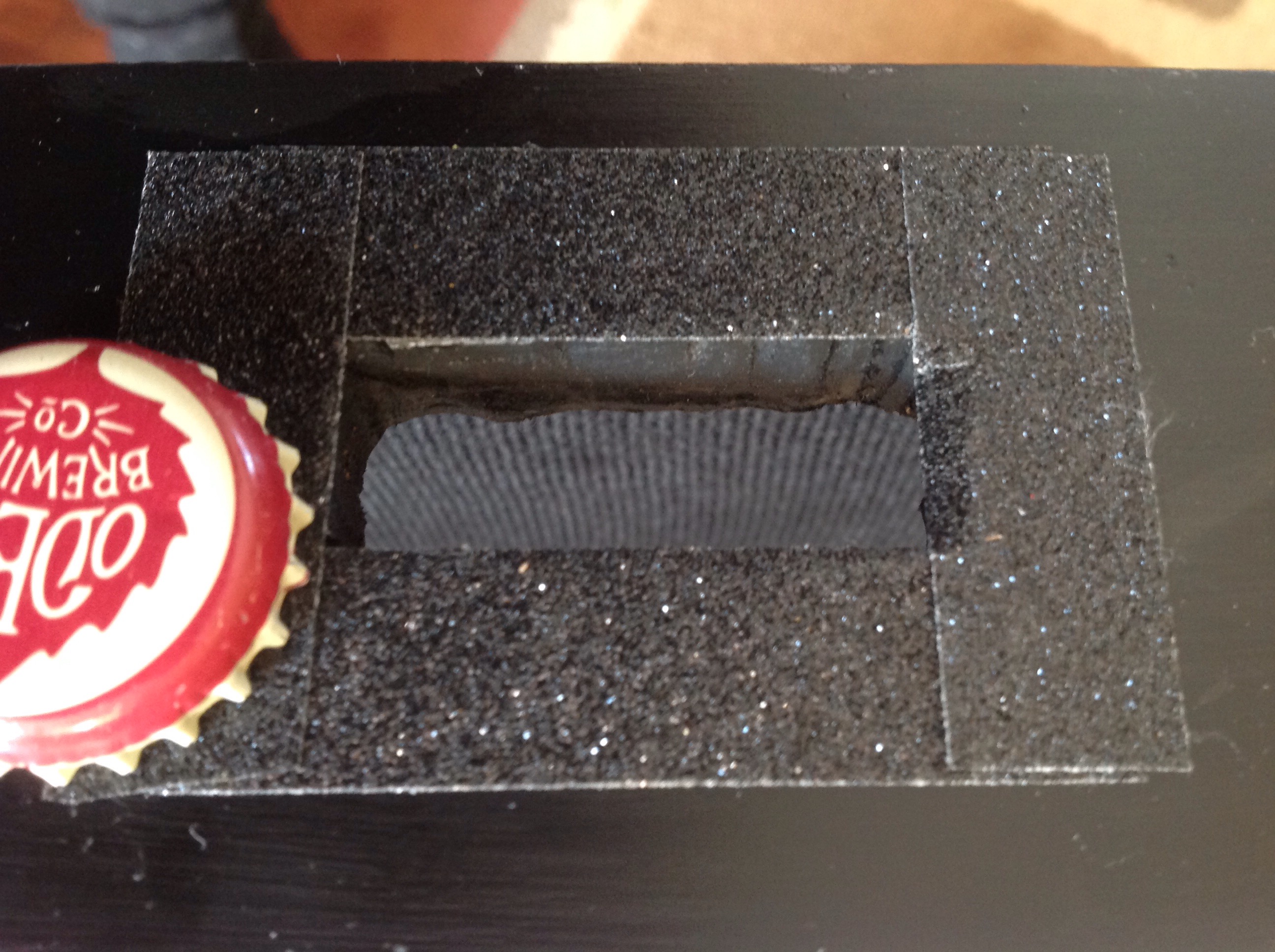 – sand the hole until it’s relatively smooth (I also put black tape around my opening because it was rough looking)