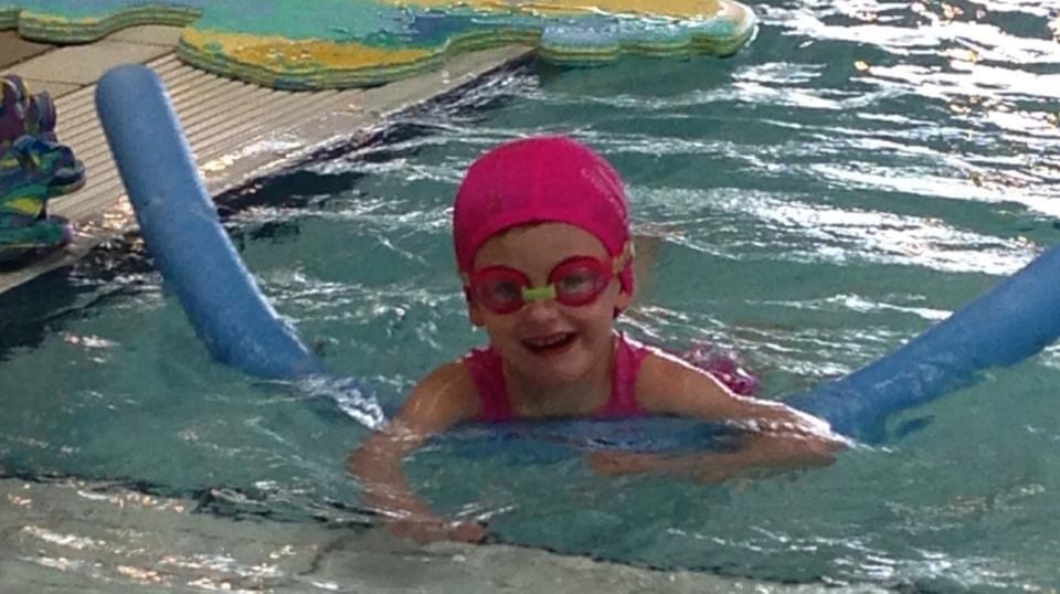 P.S.S. SWIM, JIM! is dedicated to Lily, seen here swimming with a pool noodle. Love you, Lily!
