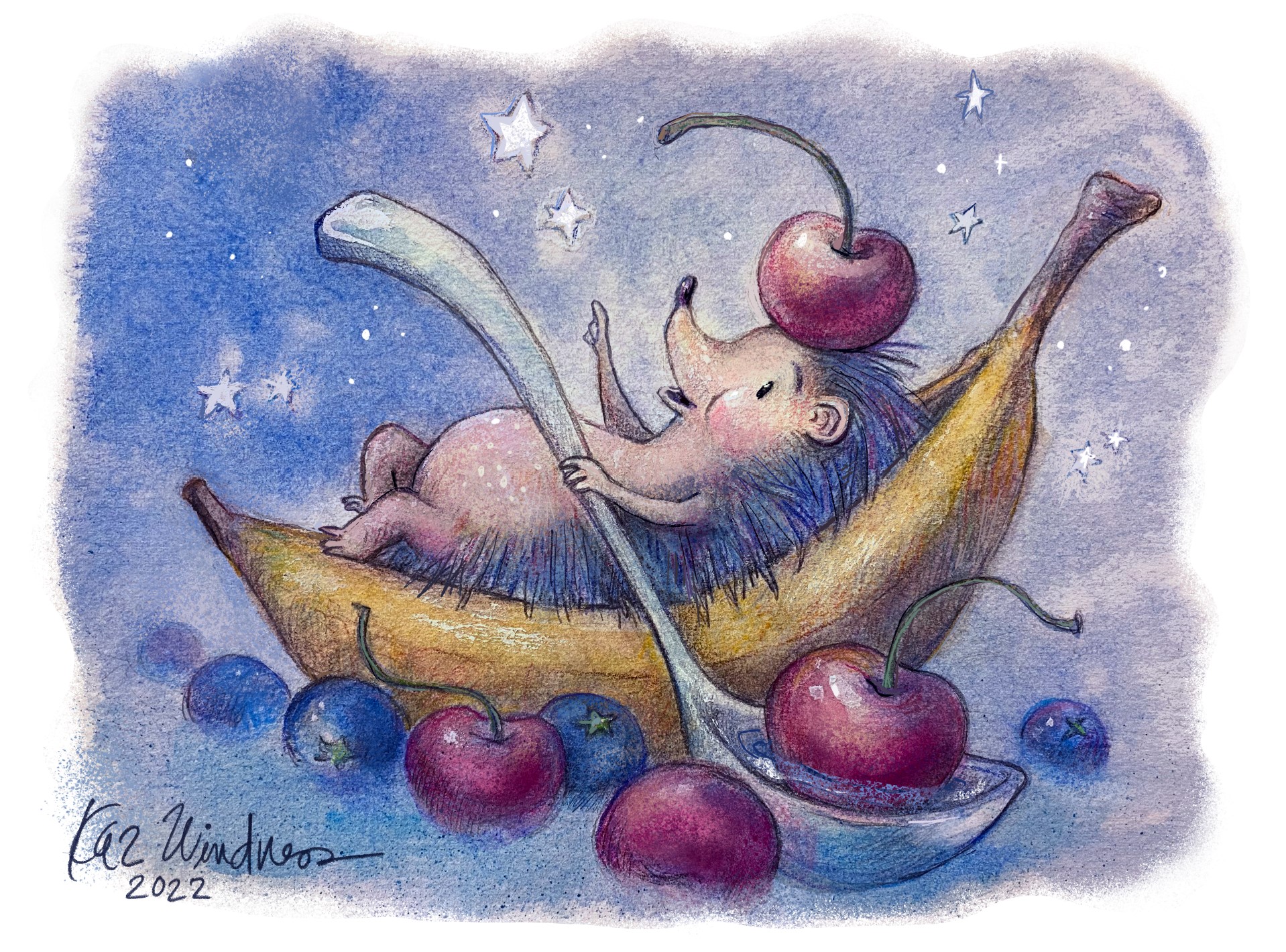 #hedgehog #cherry #banana #sundae #illustrator #kidlit #spoon #night
