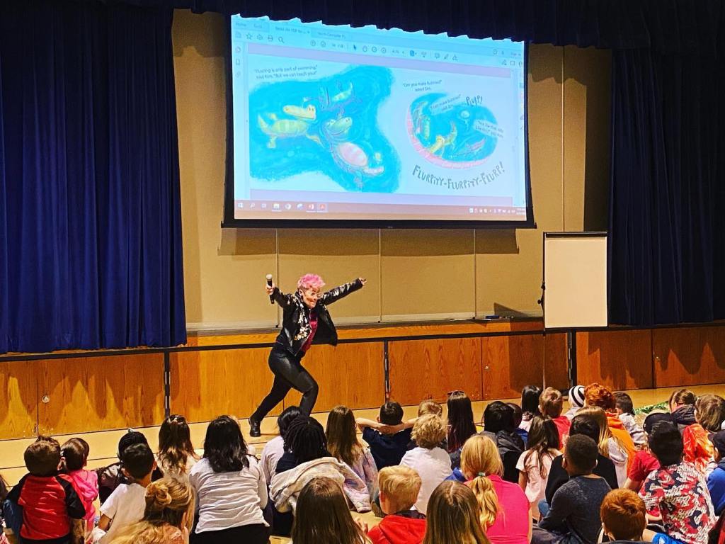 I love visiting elementary schools and inspiring students to bring stories to life with both words and art. My “Drawn to Storytelling” program is interactive from start to finish so kids are never bored. We learn about where a book idea comes from, read “Swim, Jim!” with a call-and-response for the onomatopoeia words, write and draw our own story from scratch using the “story rollercoaster” method, and finish up with your choice of “Worm and Caterpillar are Friends” or “Bitsy Bat, School Star.”