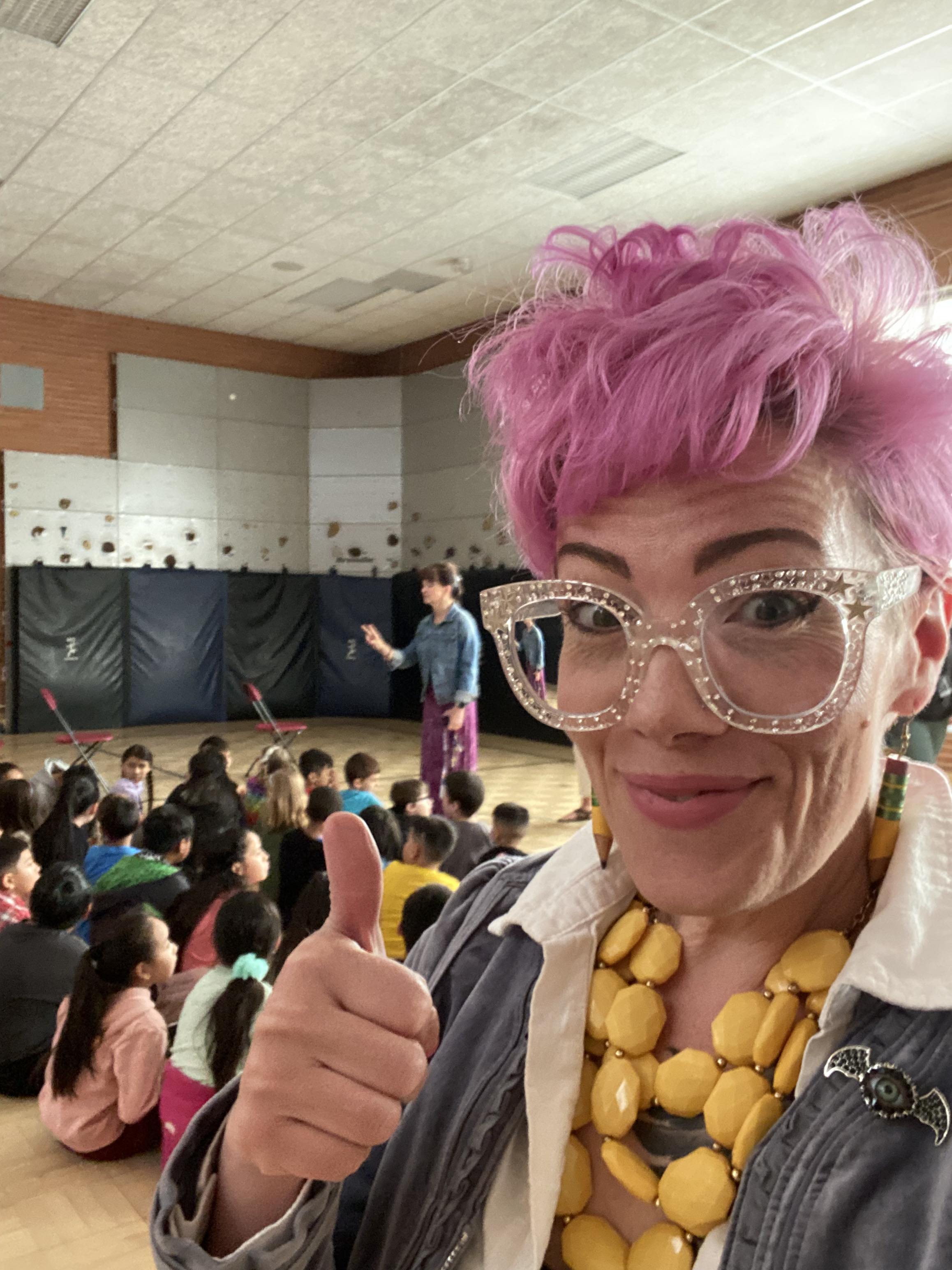 “Skyview Elementary was extremely grateful to have Kaz Windness as our author visit this year! She did an amazing job reading her books and engaging the students. She hosted two sessions so she could differentiate her presentation to Kinder-2nd graders and 3rd-5th graders. When it was time to come up with a story together, the students could not stop laughing and sharing silly ideas. Kaz drew pictures and wrote up a school story with their vision and the students absolutely loved it! Thank you, Kaz! We hope to have you again soon as this was a very memorable experience for our students and we all truly appreciate you. [Two weeks+ later] the kids are STILL talking about you!” –– Mr. Patrick Brown, School Librarian