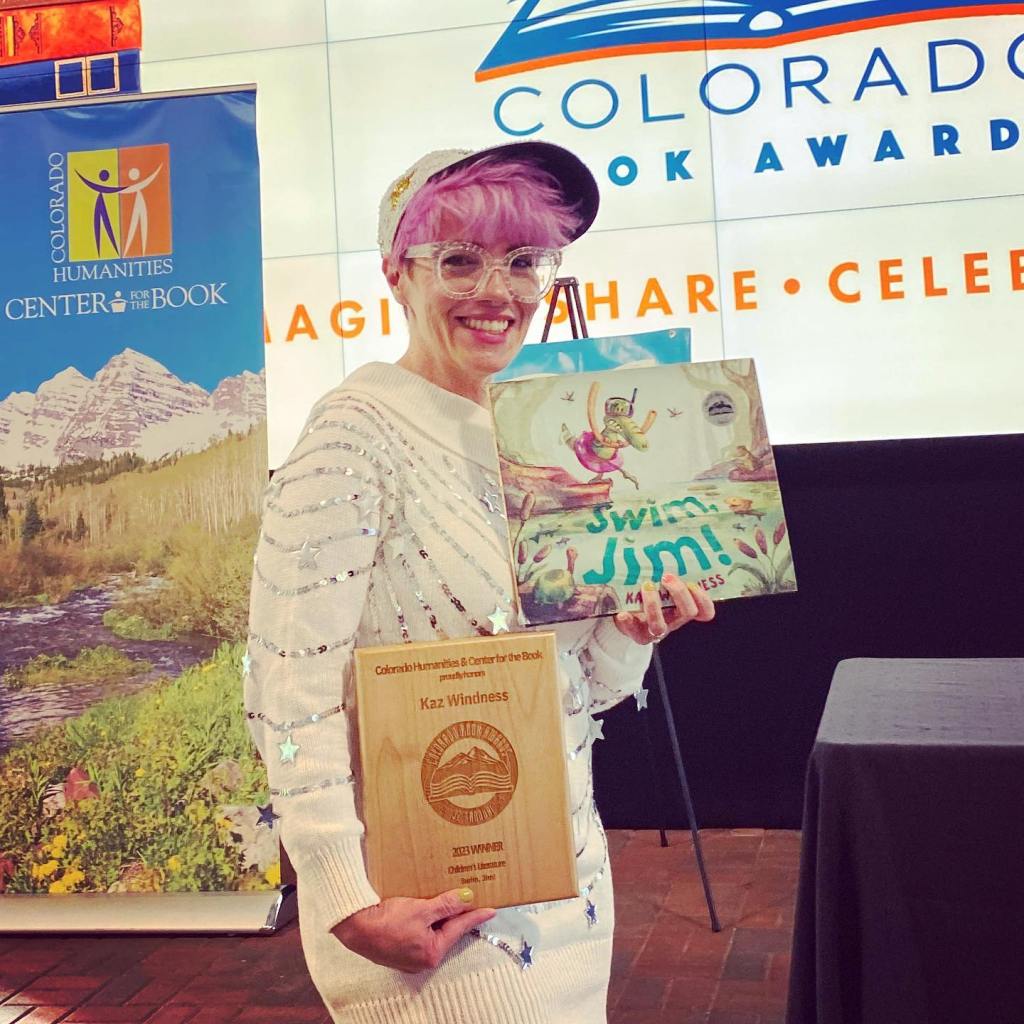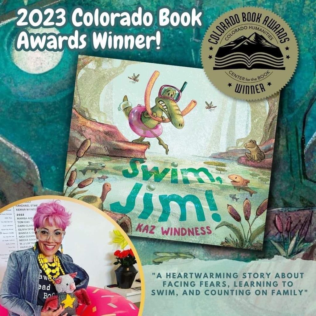 In conjunction with the Library of Congress Center for the Book, The Colorado Book Awards annually celebrates the accomplishments of Colorado’s outstanding authors, editors, illustrators, and photographers. Finalists were selected in May, and reading events were held at libraries across Colorado Springs. The winners were announced at a celebration event at The Penrose House Convention Center in Colorado Springs on Saturday, June 10, 2023, where “Swim, Jim!” received the gold medal in the Children’s Literature category.