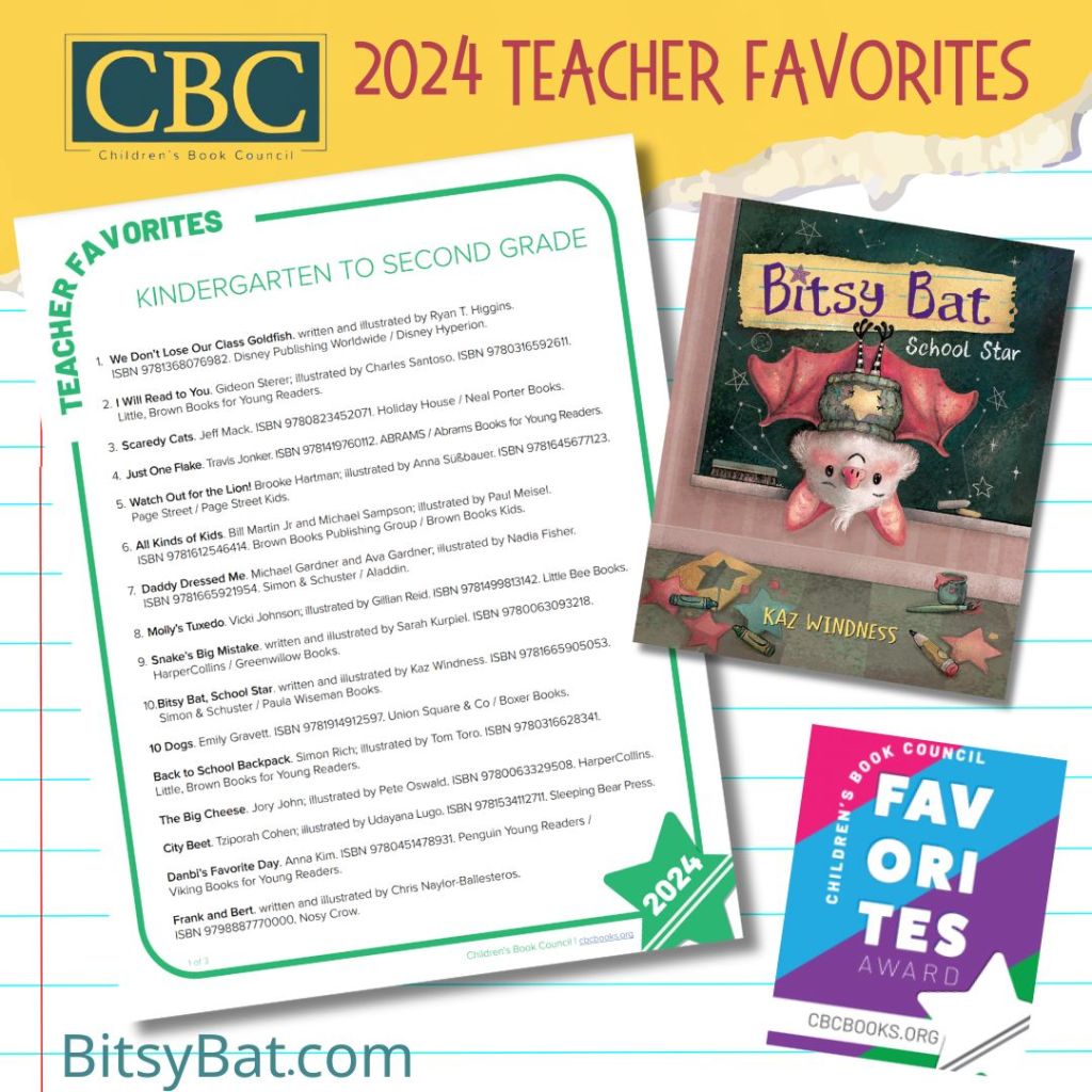 Beep-Bop-Chitter-Choo! #bitsybatschoolstar has been voted onto the 2024 Children’s Book Council’s Favorites Award List! Bitsy Bat is a TEACHER FAVORITE in the K-2nd Grade category. (Educator resources at www.BitsyBat.com!) Thank you, @childrensbookcouncil! Thank you, teachers!