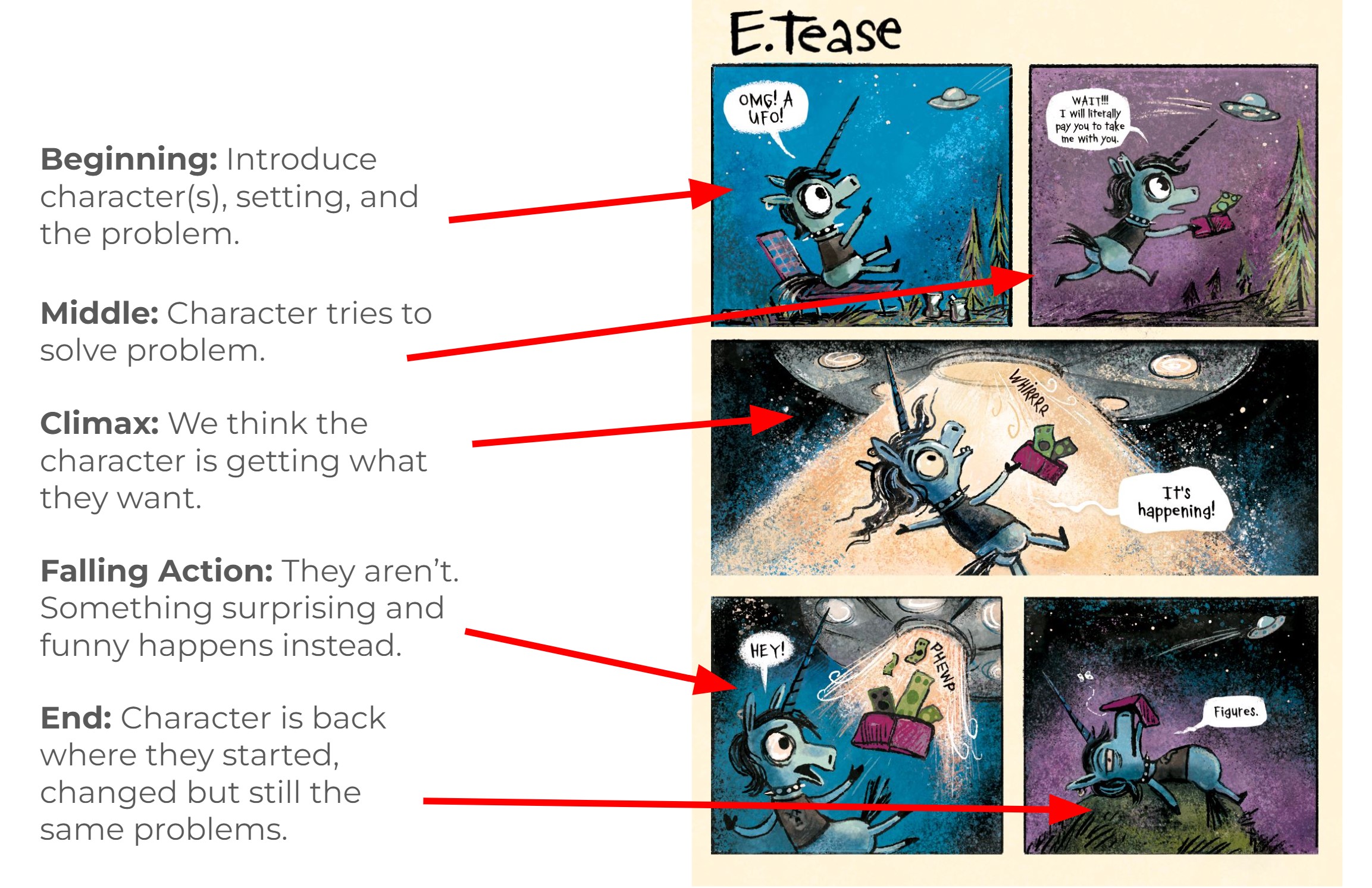 Exerpts from DRAWN TO STORYTELLING: How to Write and Illustrate Comics for 3rd-5th grade.
