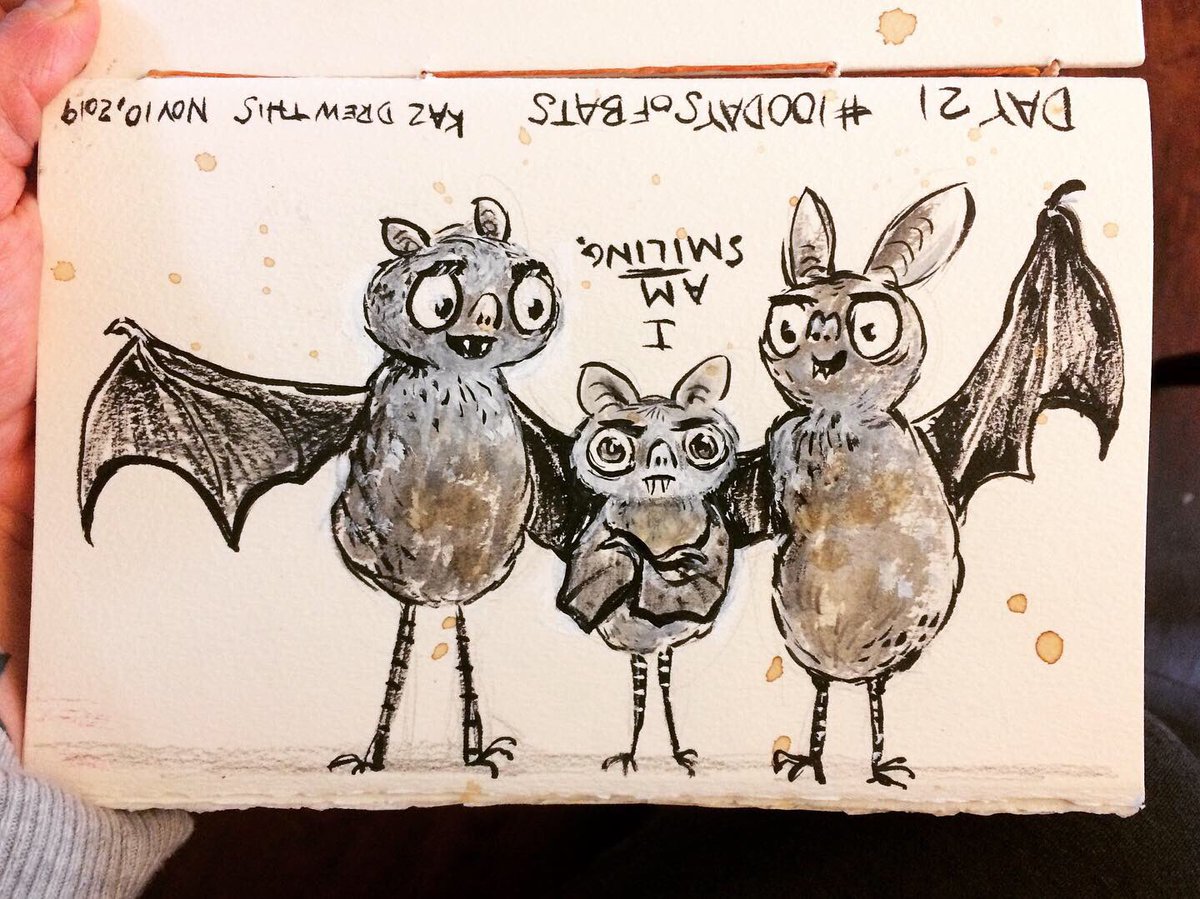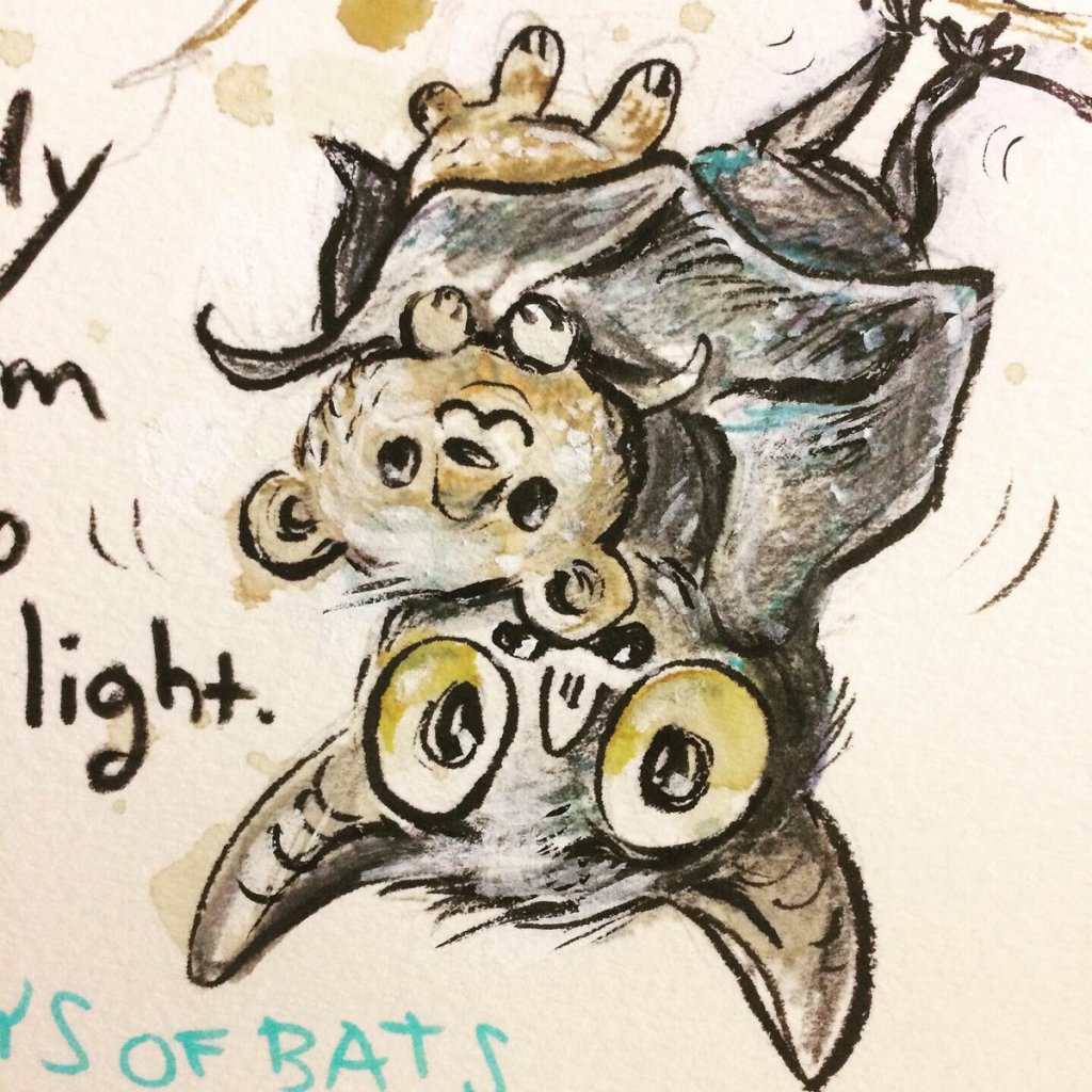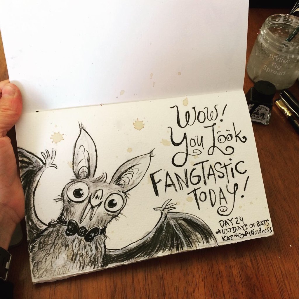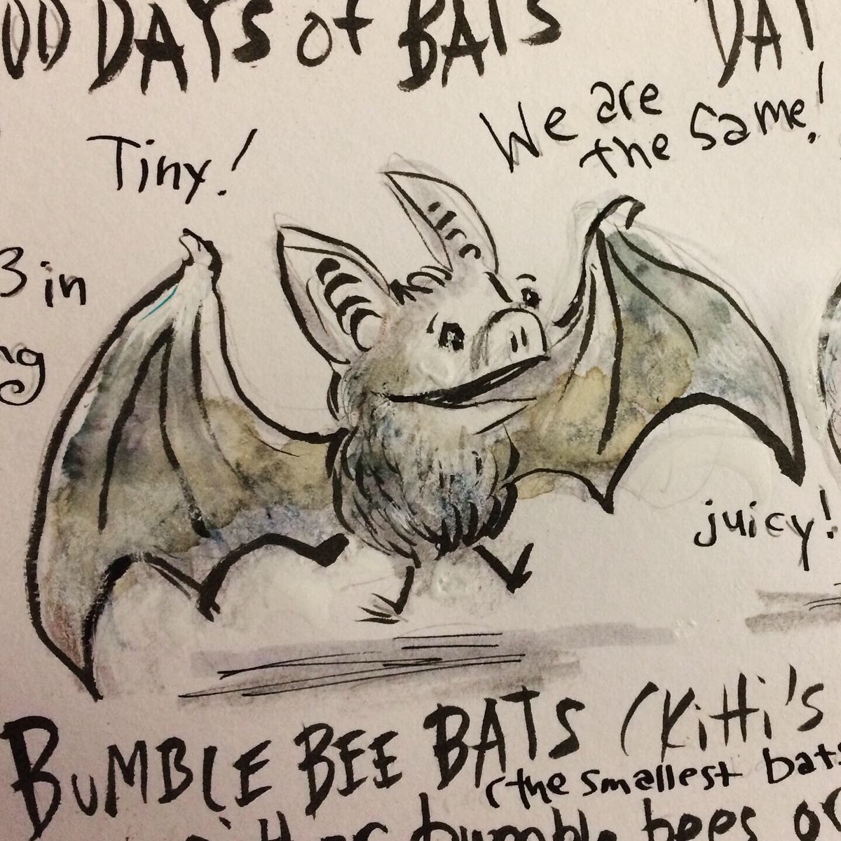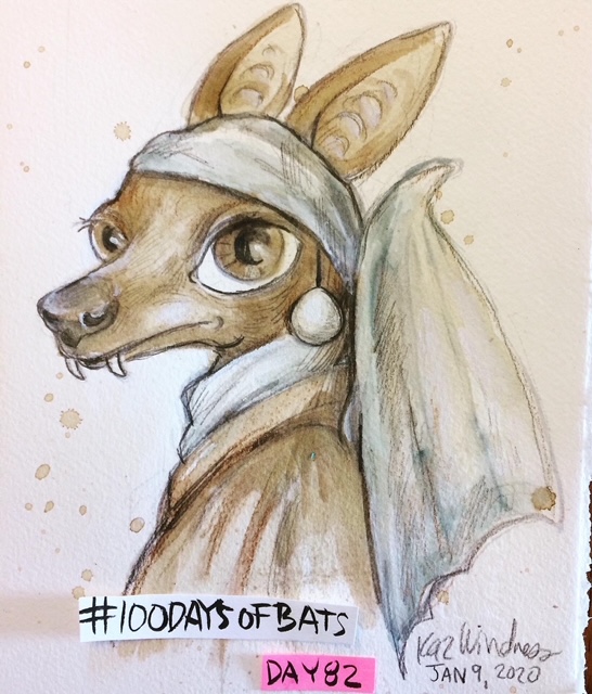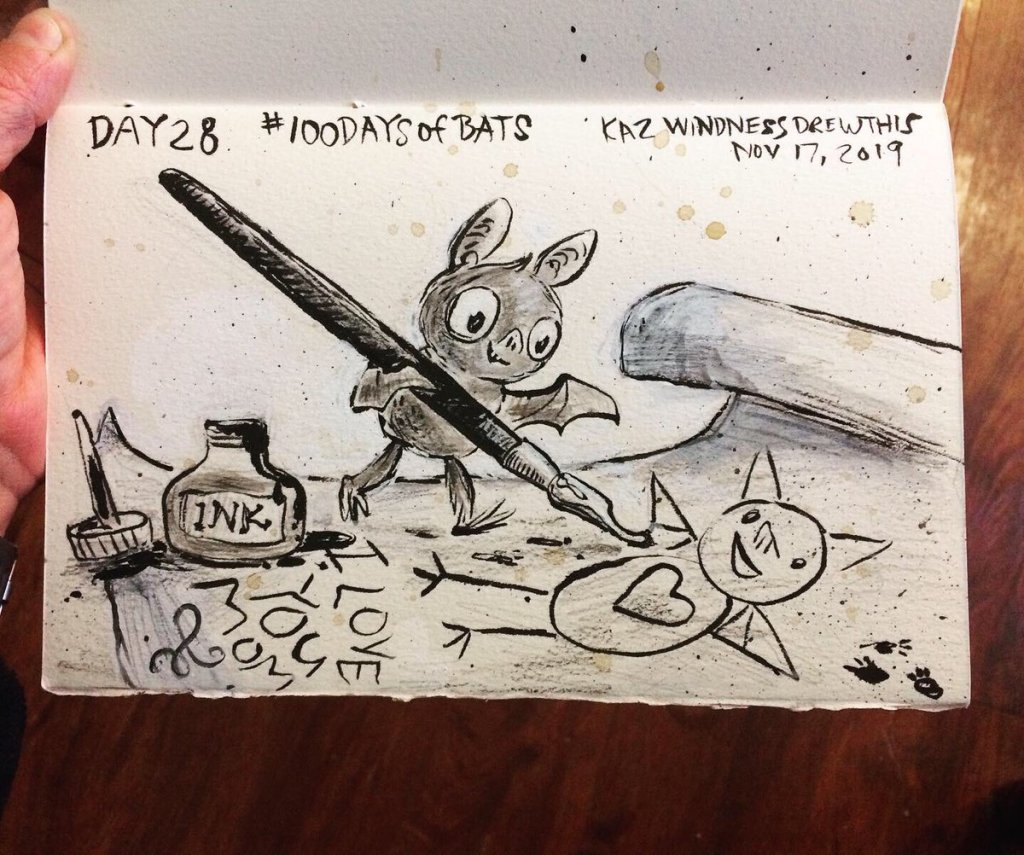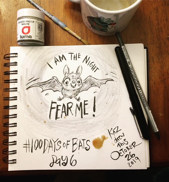 Before the “Bitsy Bat” series, I drew LOTS of bats. Here’s a #100day project I did in 2019-2020 called #100DaysOfBats. Bats are my favorite animal, and I always have ideas for them, but this forced me to dig deep and get creative. What is your favorite? Most of these are ink on Arches watercolor paper.
