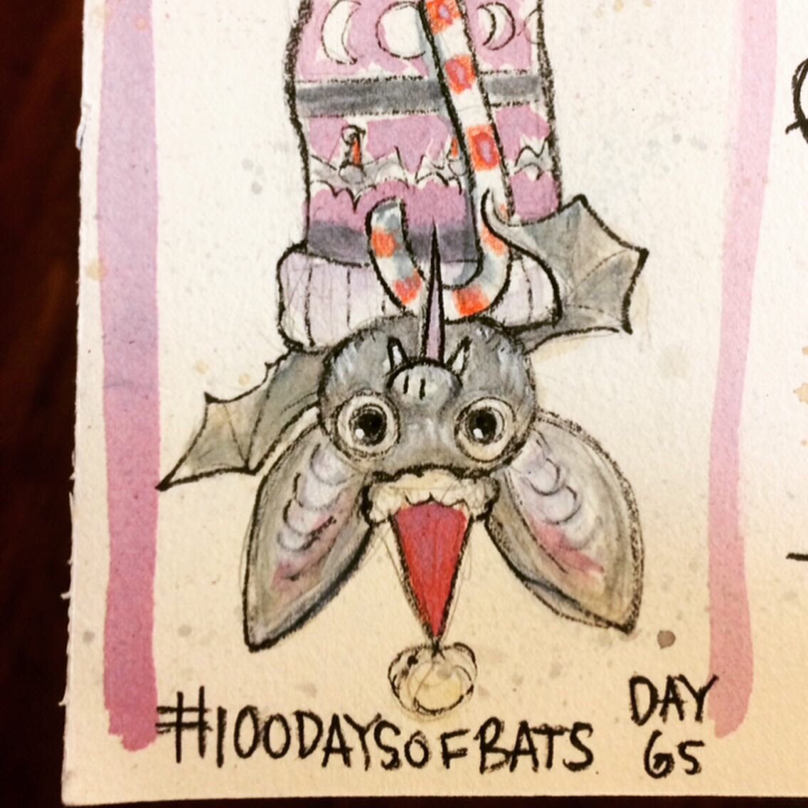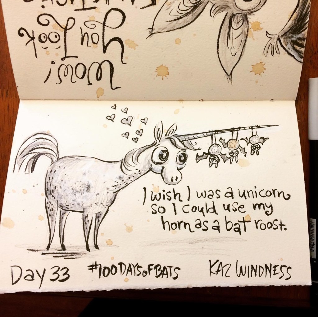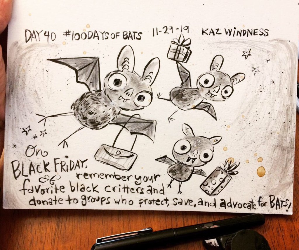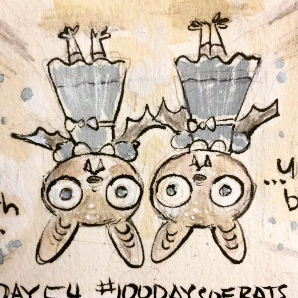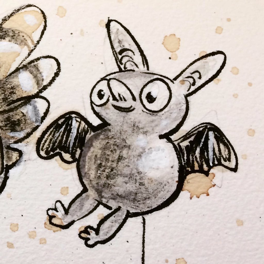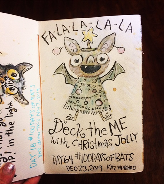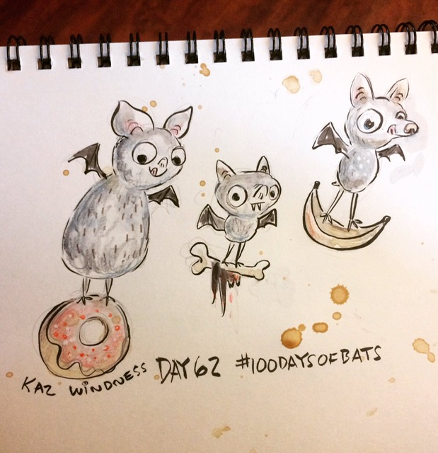 Before the “Bitsy Bat” series, I drew LOTS of bats. Here’s a #100day project I did in 2019-2020 called #100DaysOfBats. Bats are my favorite animal, and I always have ideas for them, but this forced me to dig deep and get creative. What is your favorite? Most of these are ink on Arches watercolor paper.