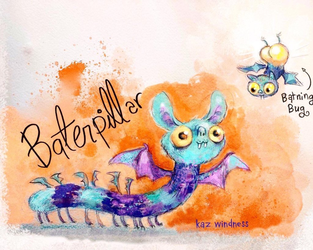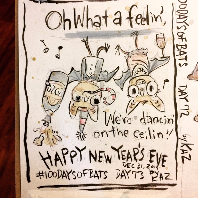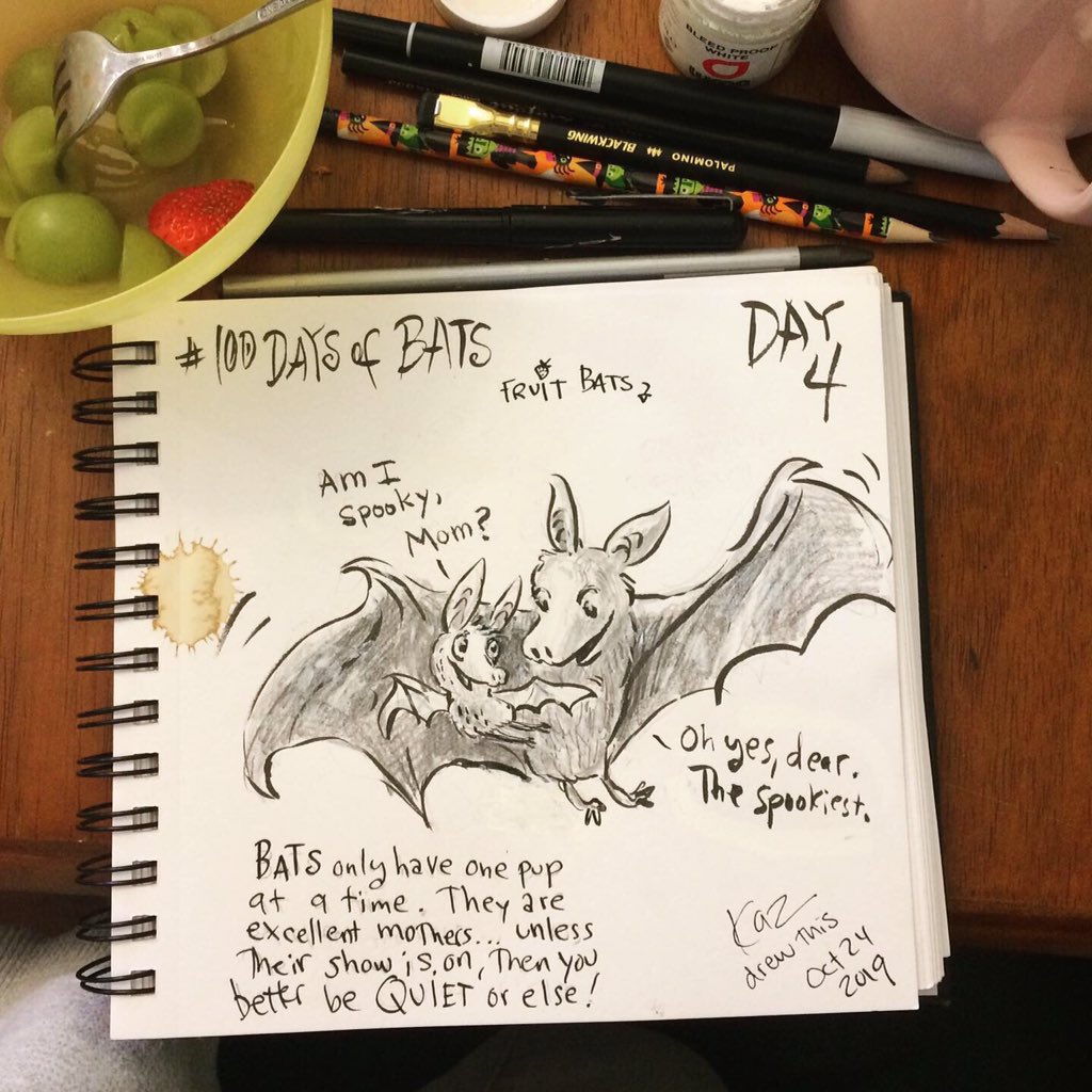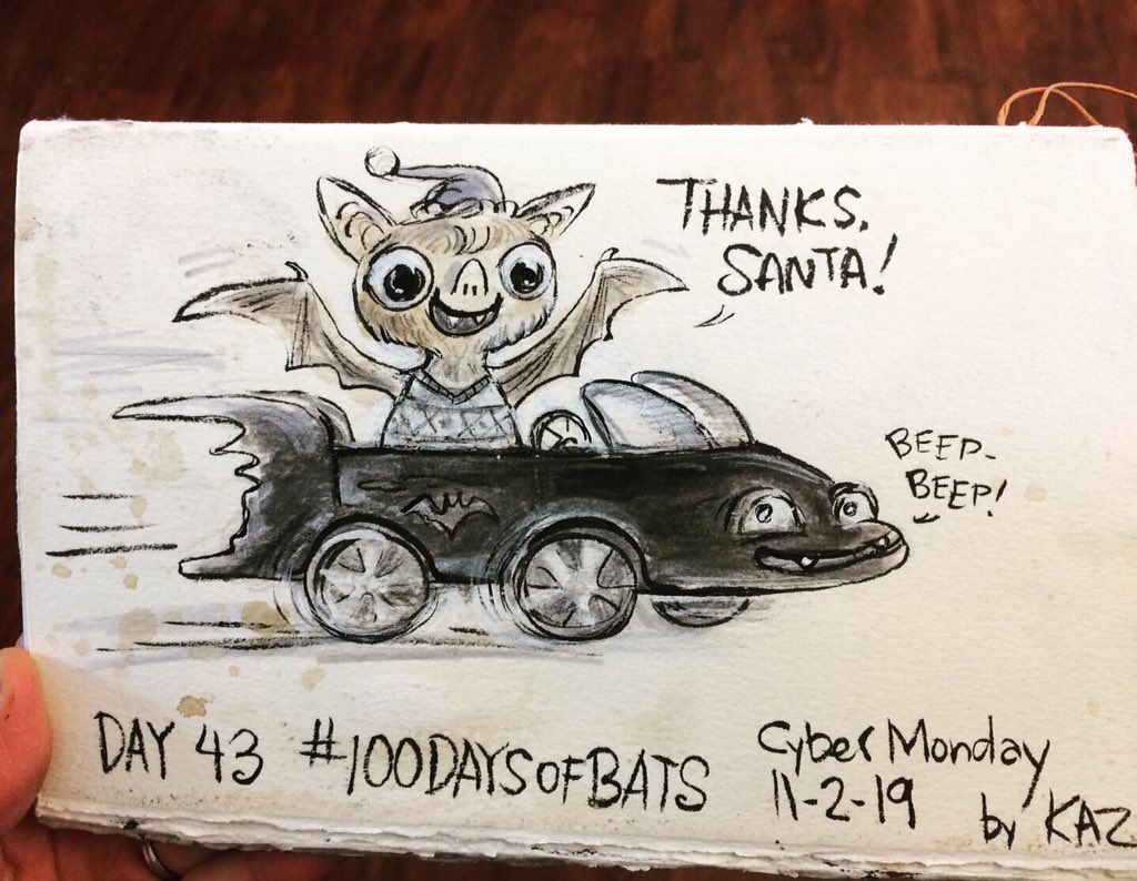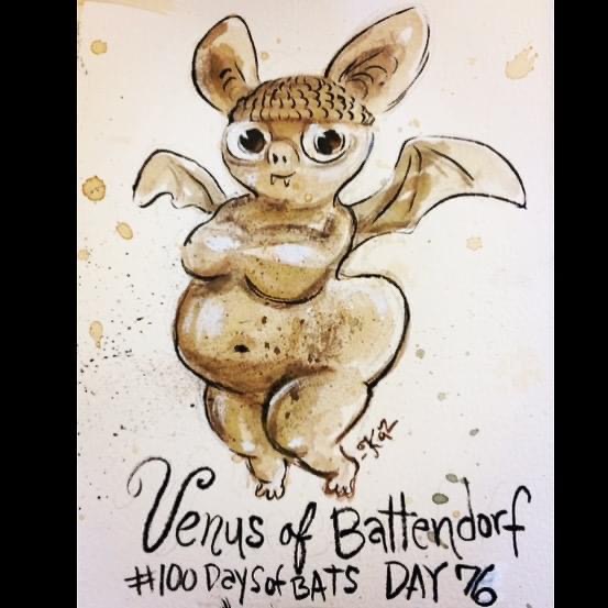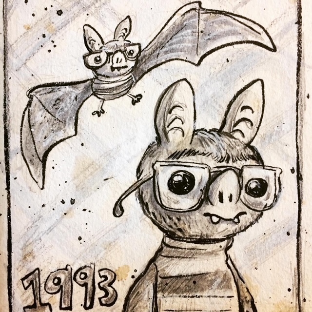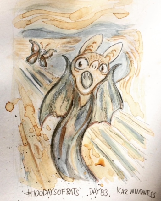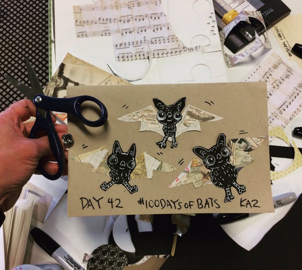Before the “Bitsy Bat” series, I drew LOTS of bats. Here’s a #100day project I did in 2019-2020 called #100DaysOfBats. Bats are my favorite animal, and I always have ideas for them, but this forced me to dig deep and get creative. What is your favorite? Most of these are ink on Arches watercolor paper.