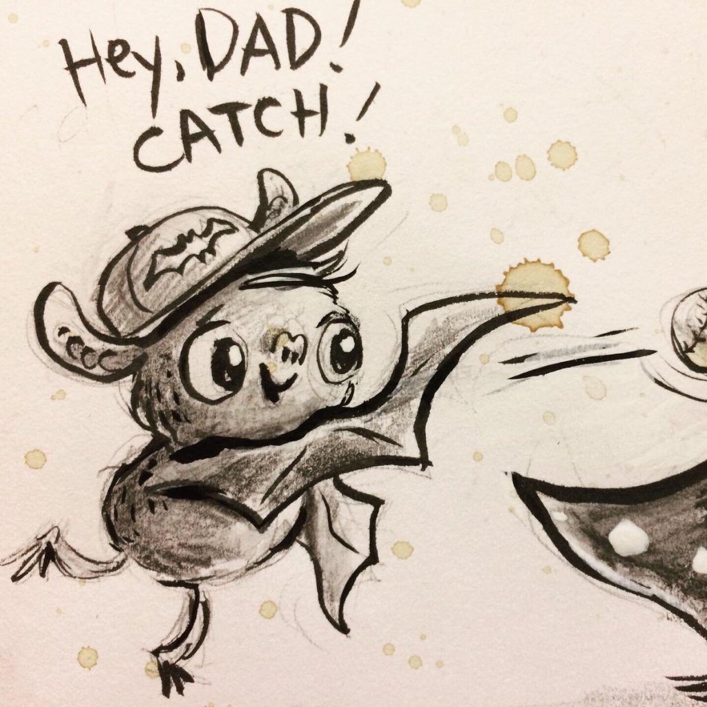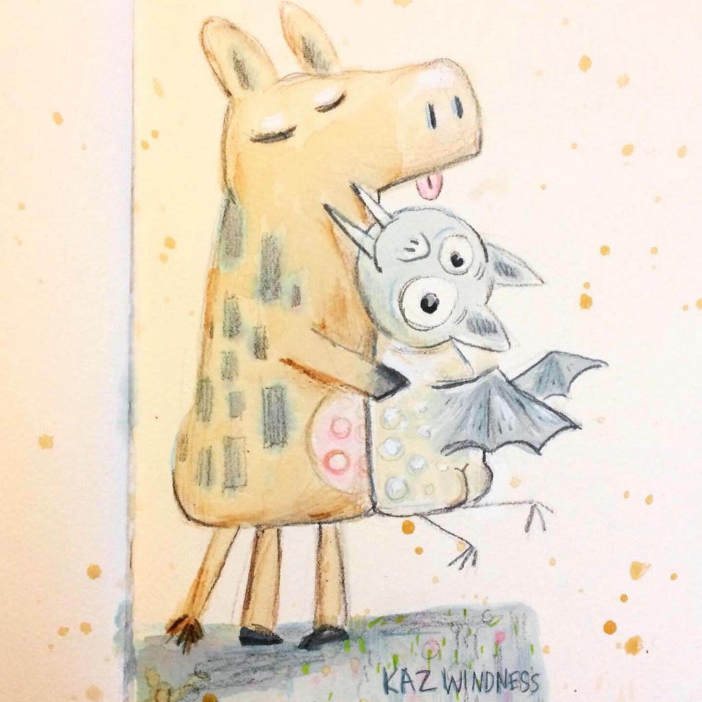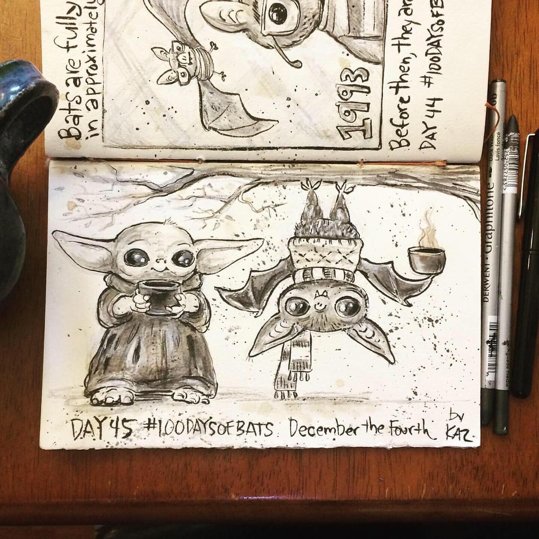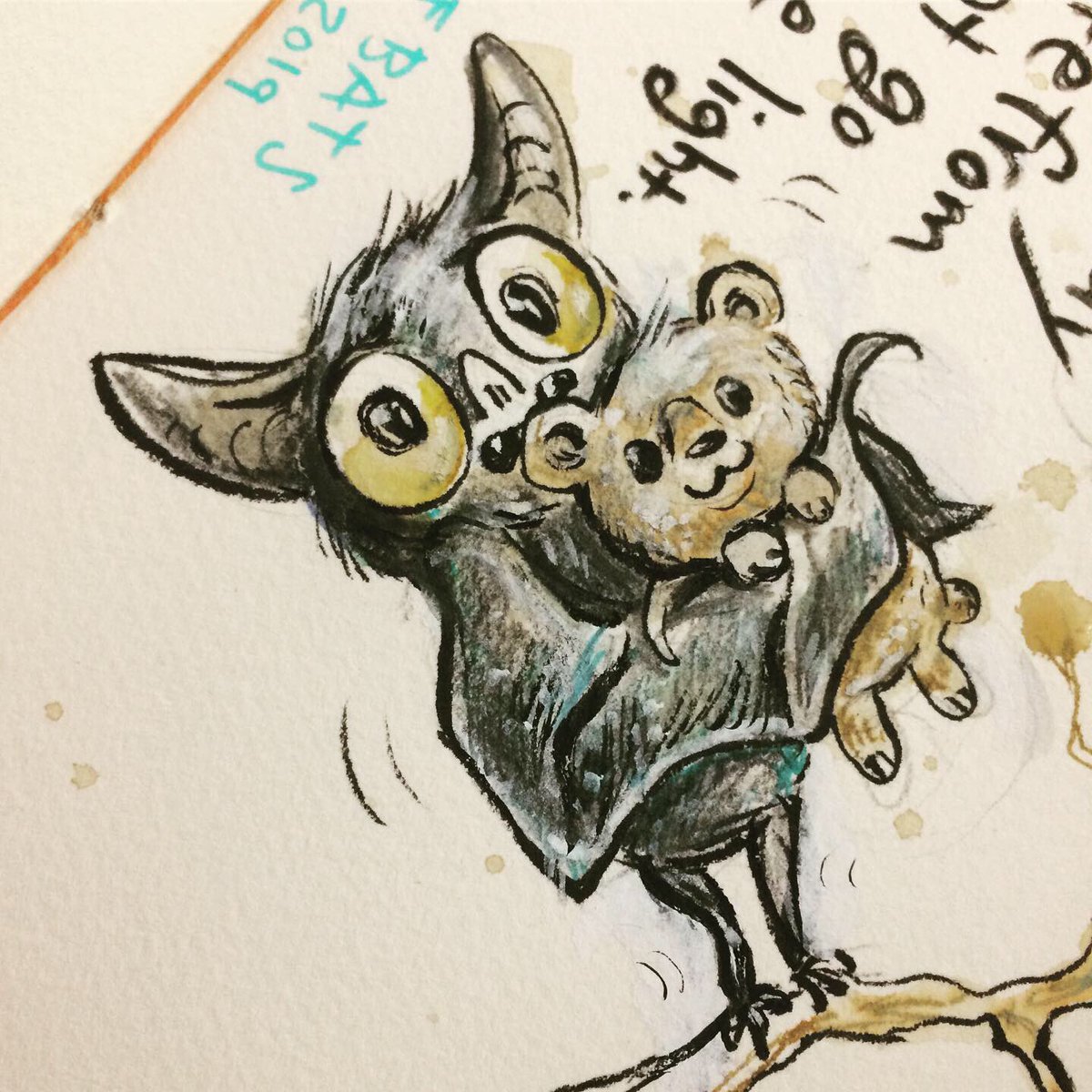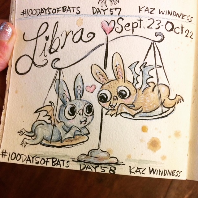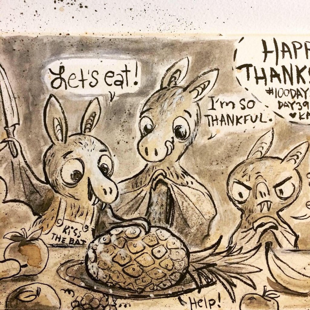 Before the “Bitsy Bat” series, I drew LOTS of bats. Here’s a #100day project I did in 2019-2020 called #100DaysOfBats. Bats are my favorite animal, and I always have ideas for them, but this forced me to dig deep and get creative. What is your favorite? Most of these are ink on Arches watercolor paper.