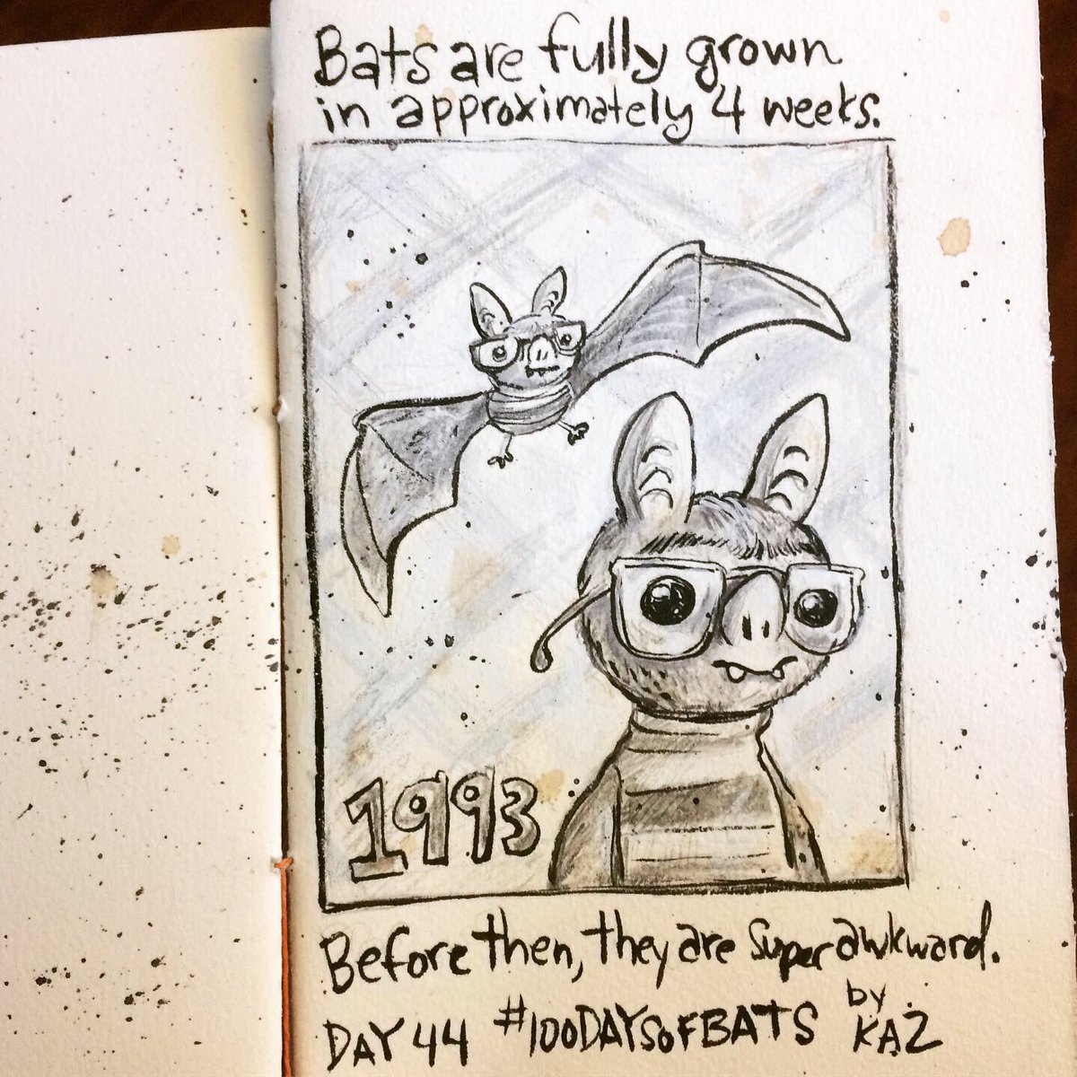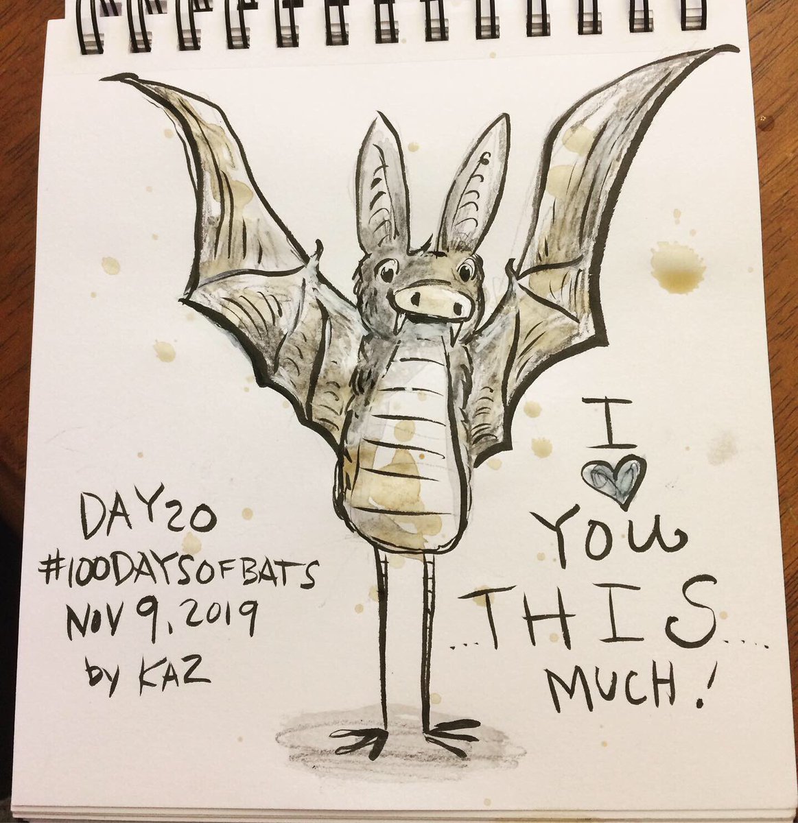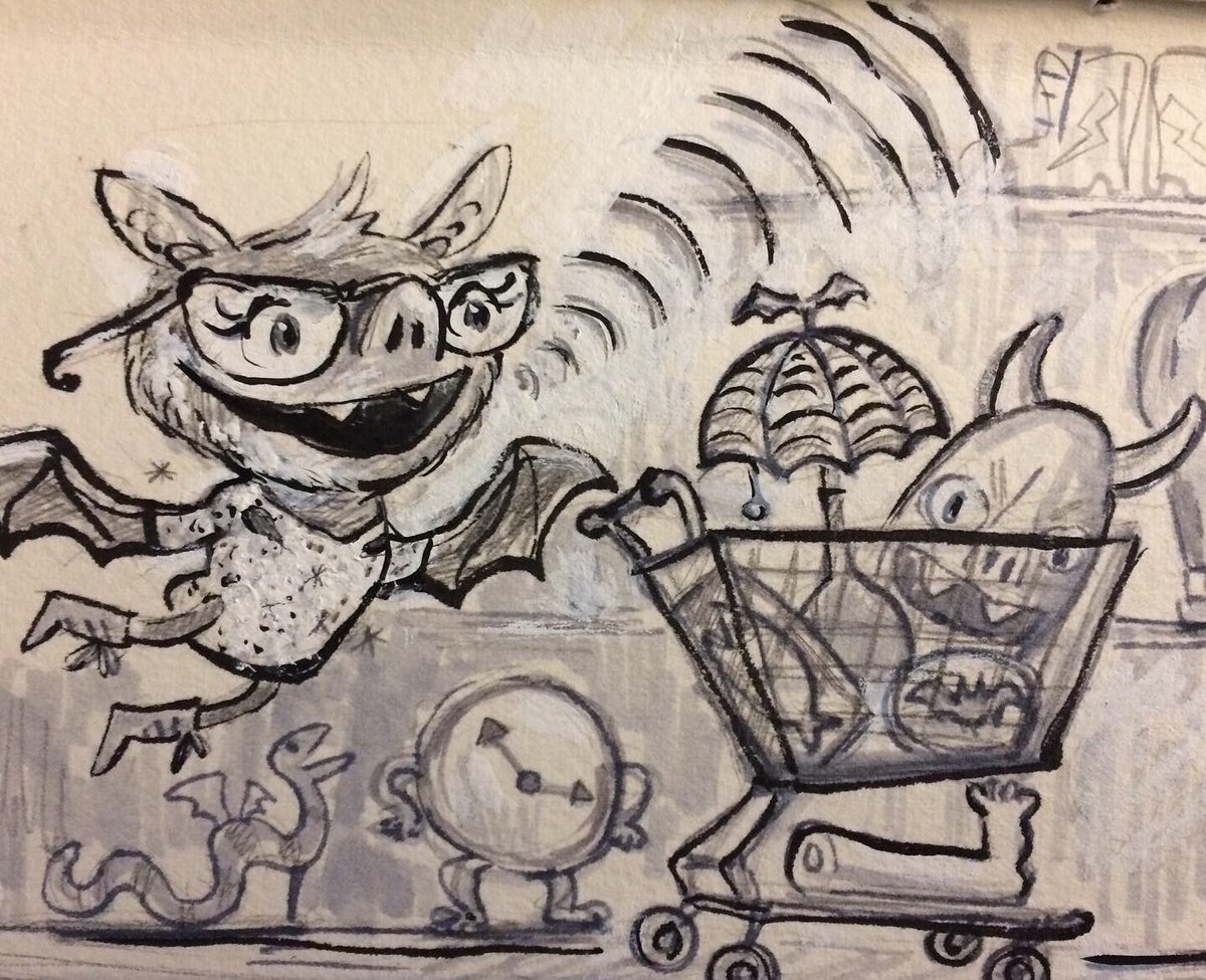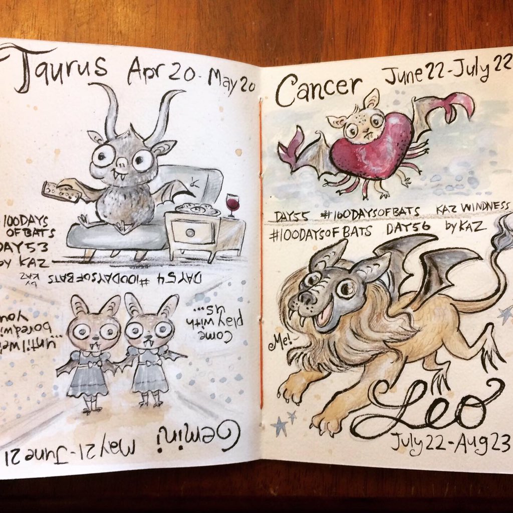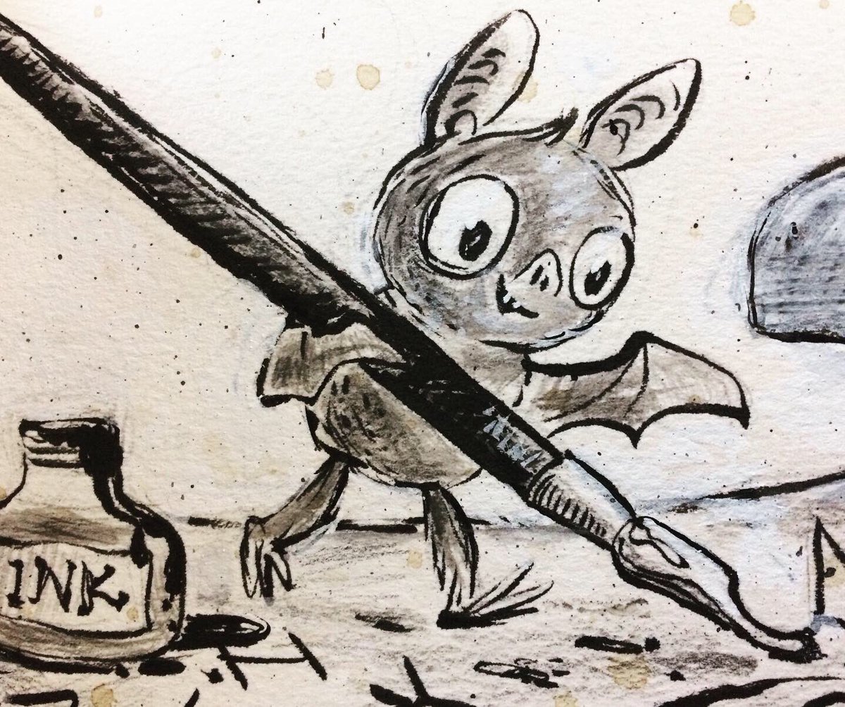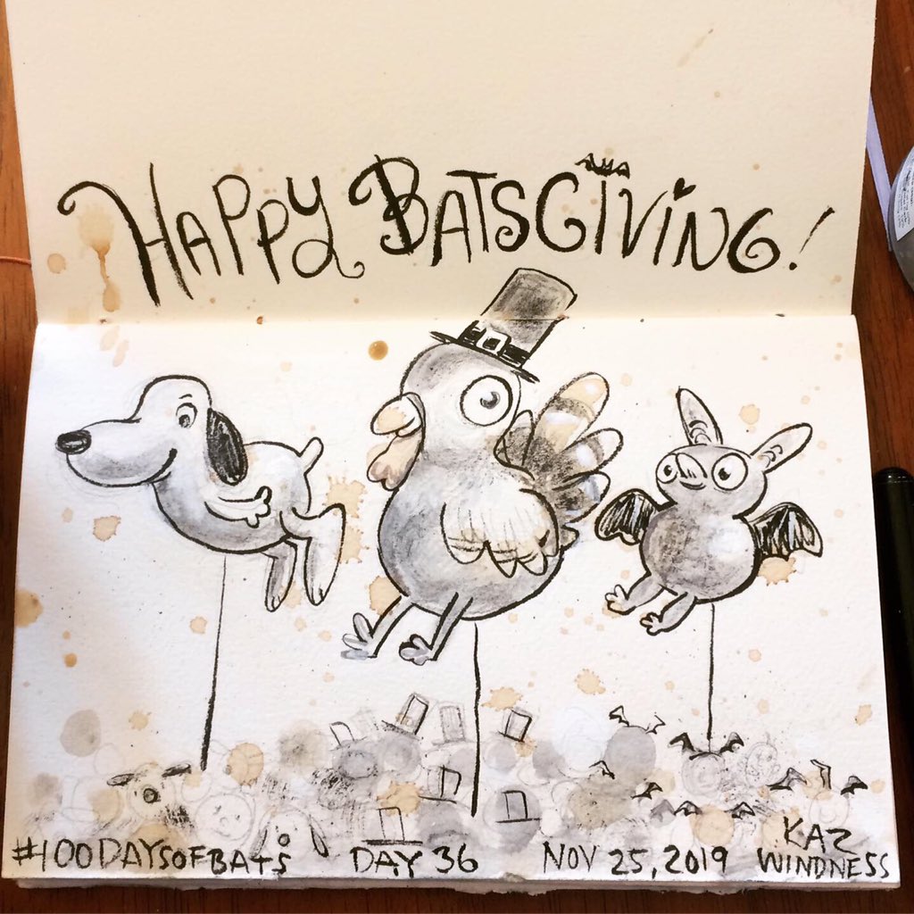 Before the “Bitsy Bat” series, I drew LOTS of bats. Here’s a #100day project I did in 2019-2020 called #100DaysOfBats. Bats are my favorite animal, and I always have ideas for them, but this forced me to dig deep and get creative. What is your favorite? Most of these are ink on Arches watercolor paper.