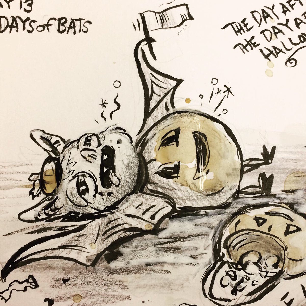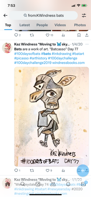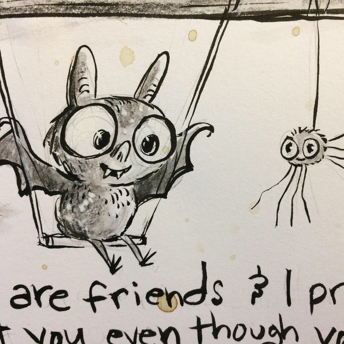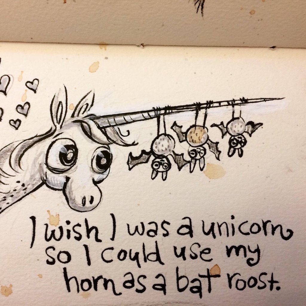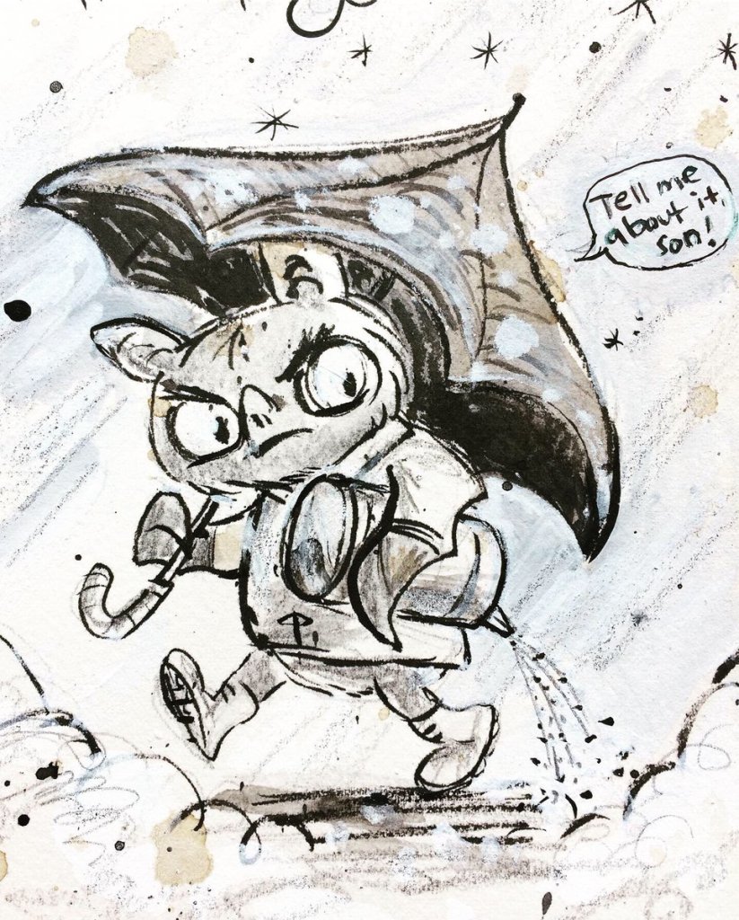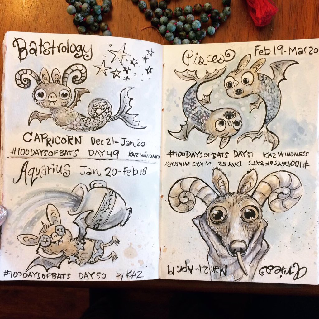 Before the “Bitsy Bat” series, I drew LOTS of bats. Here’s a #100day project I did in 2019-2020 called #100DaysOfBats. Bats are my favorite animal, and I always have ideas for them, but this forced me to dig deep and get creative. What is your favorite? Most of these are ink on Arches watercolor paper.