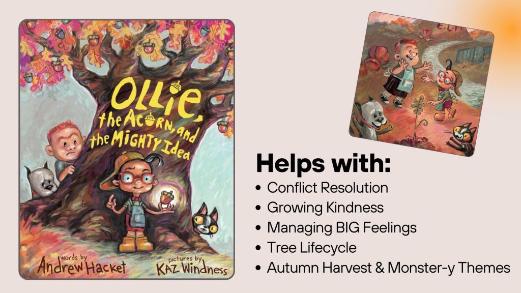 Look who’s in Publisher’s Weekly Children’s Bookshelf today! It’s your nutty pals, Andrew Hacket and Kaz Windness with a new book in the works, SQUIRREL AND TURTLE: THIS BOOK HAS BIG WORDS. I’m thrilled to have more books with Andrew and Simon Spotlight! Special thanks to our agents, Dan Cramer and Timothy Travaglini. And if you haven’t yet seen what we’re capable of, be sure to check out “Ollie, the Acorn, and the Mighty Idea” today!
