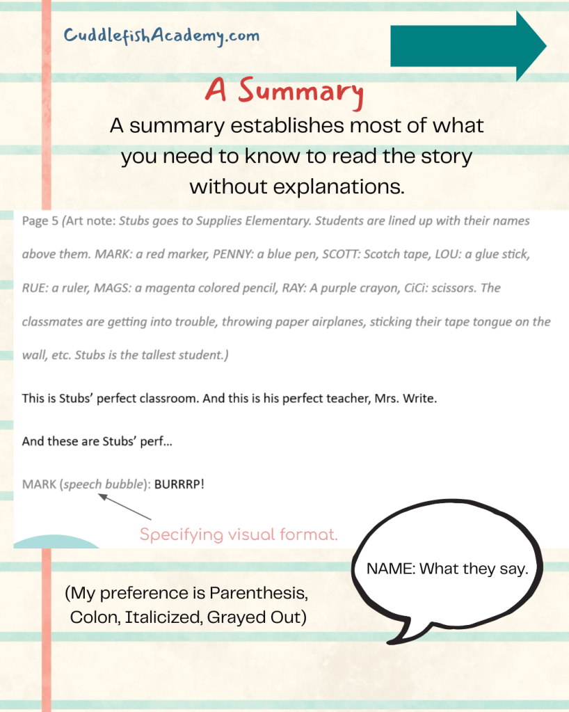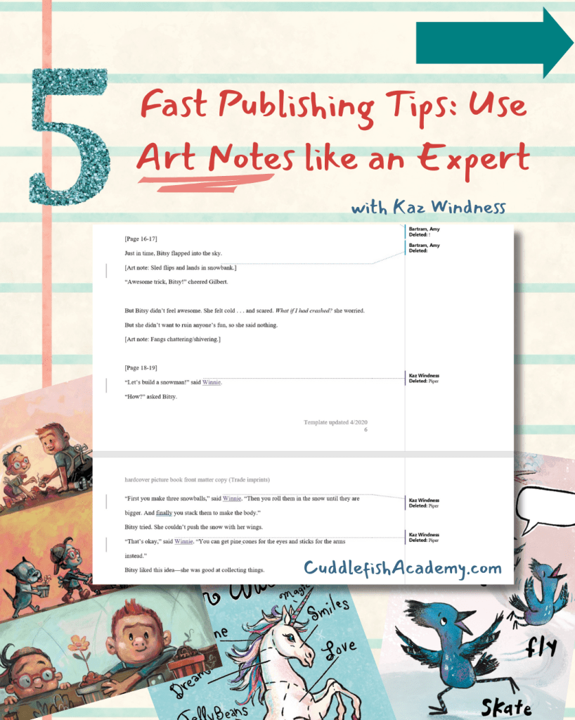 Here’s a fast 5-step guide on using art notes in your picture book and graphic novel manuscripts. We had SO many questions about art notes at the “All About Picture Books” working retreat at Highlights, I created this visual guide for you. Is there anything you would add?