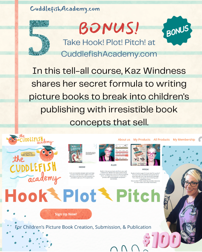 Hook! Plot! Pitch! here: https://cuddlefishacademy.teachable.com/p/hook-plot-pitch-break-into-trade-publishing-a-workshop-for-writers-writer-illustrators
