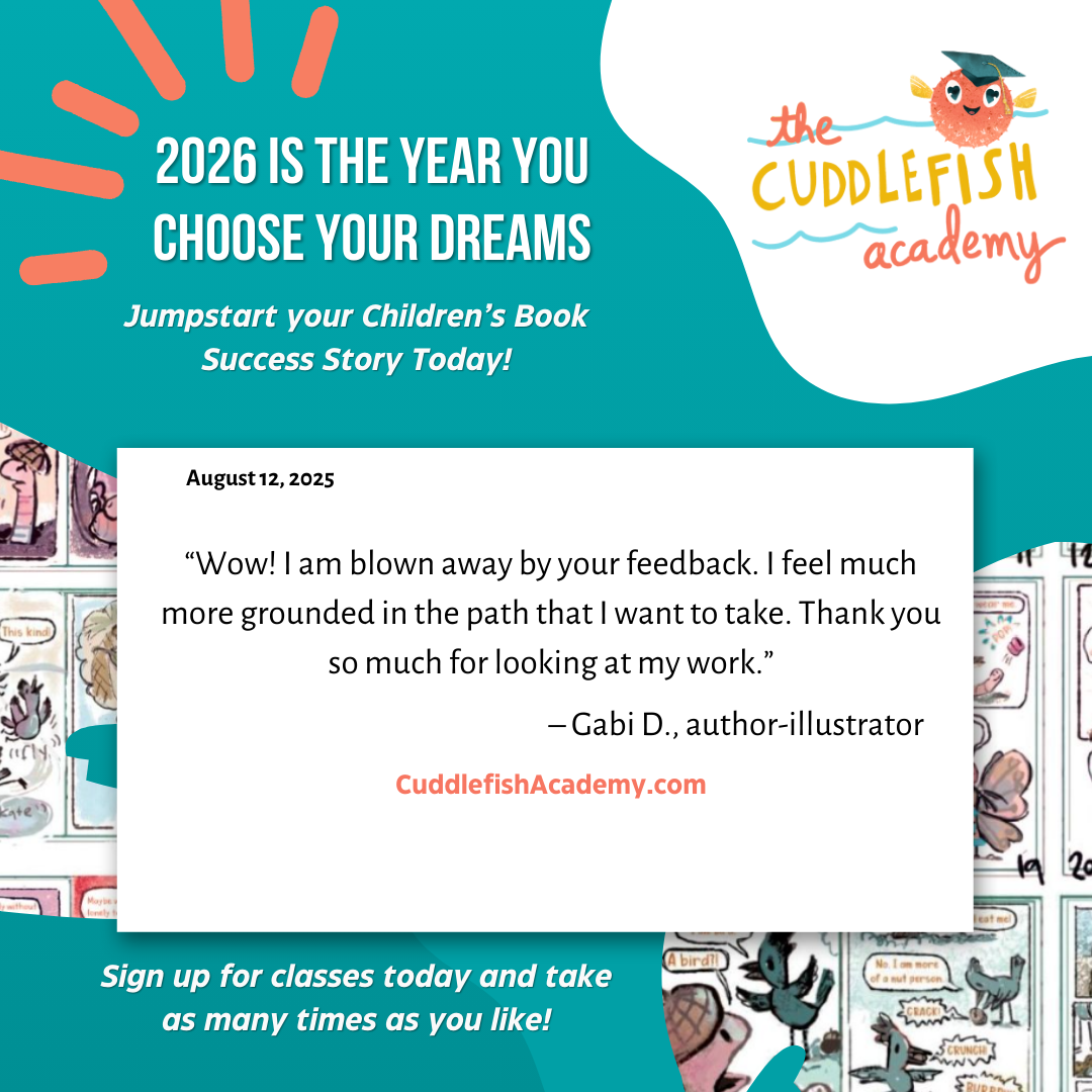 And as always, we will be adding new children’s book classes and opportunities in 2026. See you at Cuddlefish Academy, an online school for children’s book writers and illustrators.