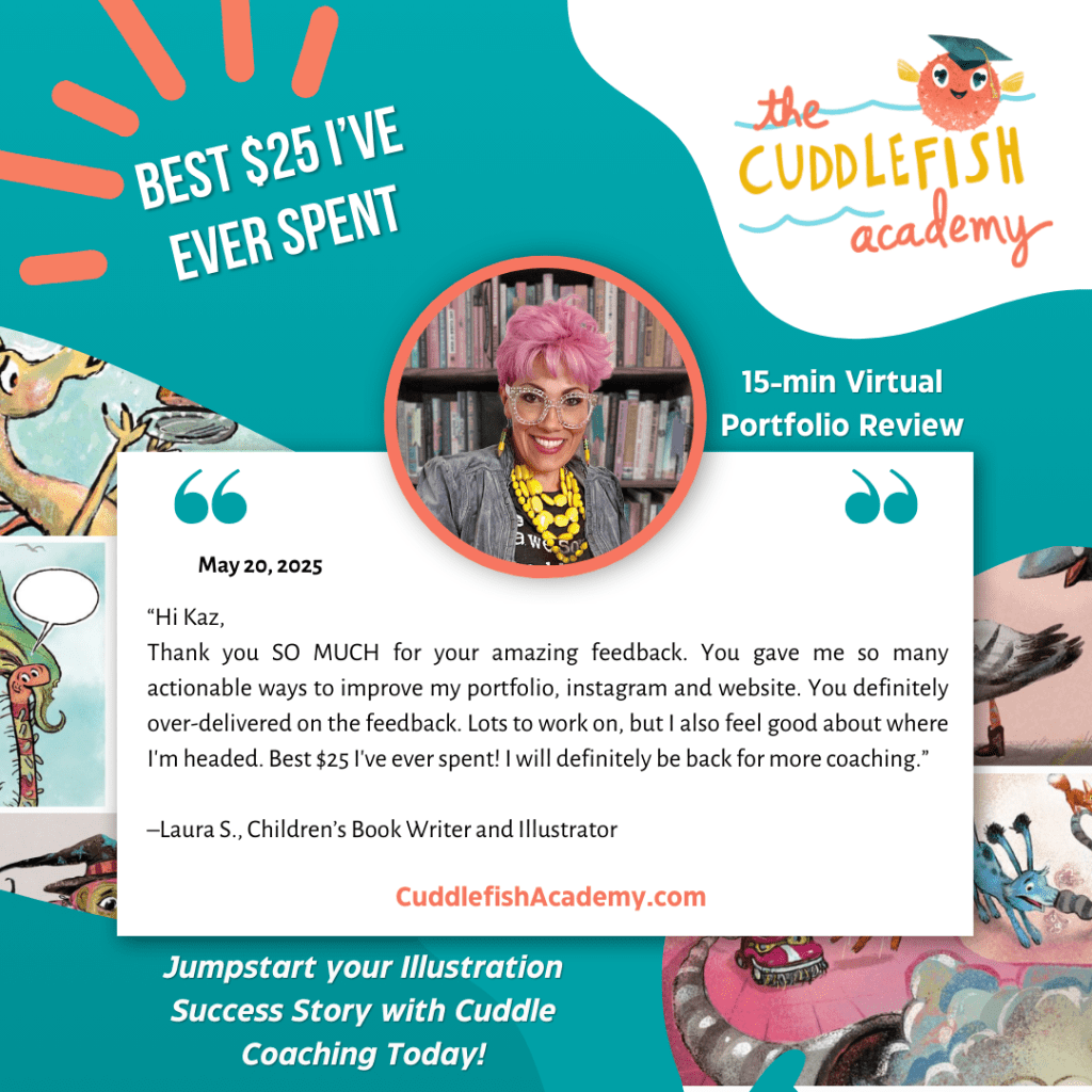 Over 80 coaching sessions last year, and I couldn’t be more honored or proud to work with all you talented writers and illustrators. Your creativity, passion, and talent give me so much hope! Hope for our industry, our children, and the world. To get yours, visit our website HERE. Here is what students are saying about coaching with Kaz: