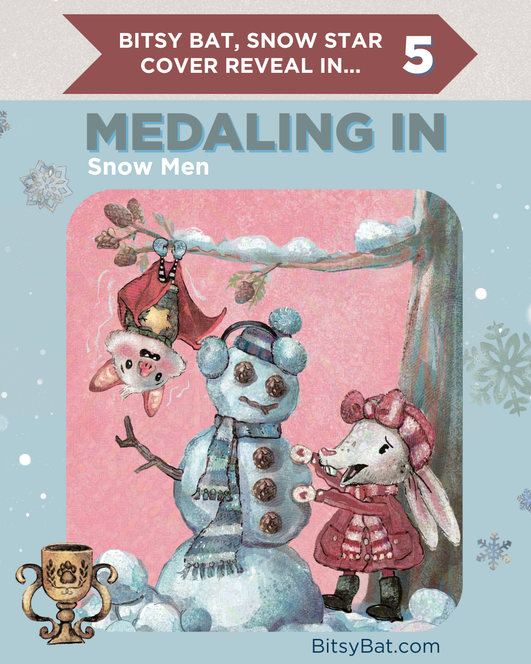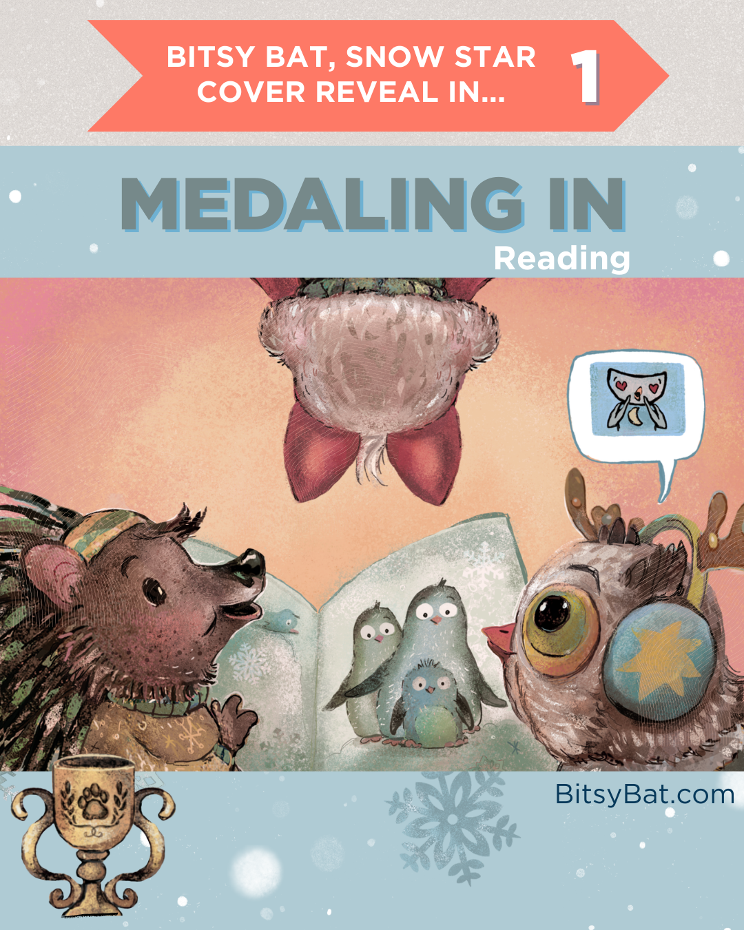 What winter activity would you medal in? Bitsy tries them all in BITSY BAT, SNOW STAR, available now for pre❄rder. Swipe for the cover reveal and news about my autism acceptance series. BITSYBAT.COM