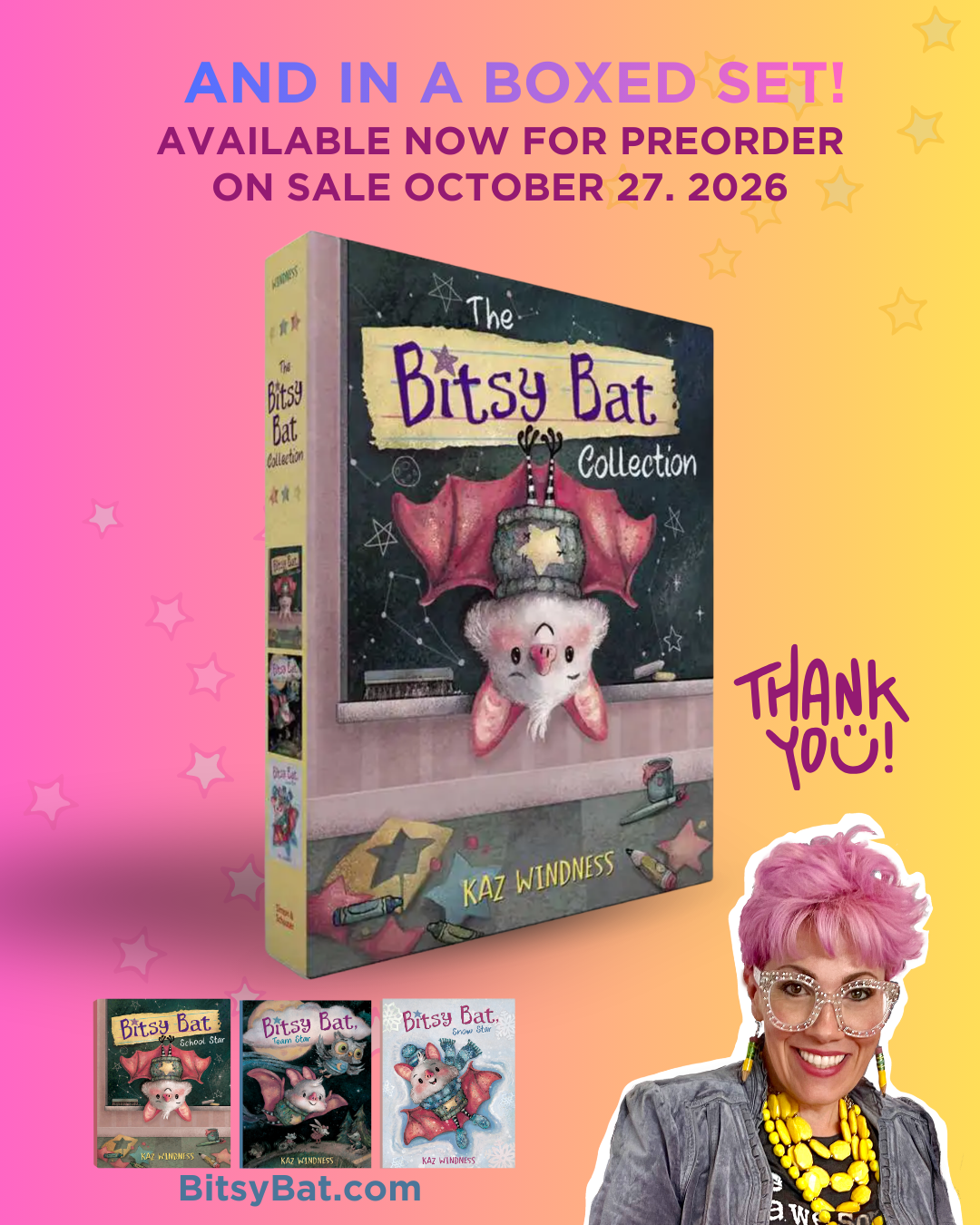 “Bitsy Bat experiences her first snow and discovers it’s okay for friends to not always like the same things in another charming follow-up to Bitsy Bat, School Star from Theodor Seuss Geisel Honor–winning author-illustrator Kaz Windness.”